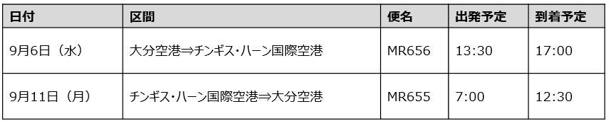 運航路線:大分空港(大分県国東市)⇔チンギス・ハーン国際空港(モンゴル・ウランバートル)