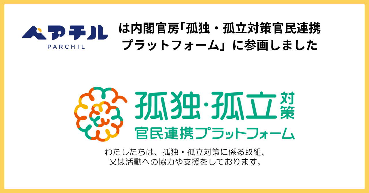 内閣官房「孤独・孤立対策官民連携プラットフォーム」にペアチルが参画!孤独・孤立対策担当室などと連携し、ひとり親の方の孤独を解消していきます。