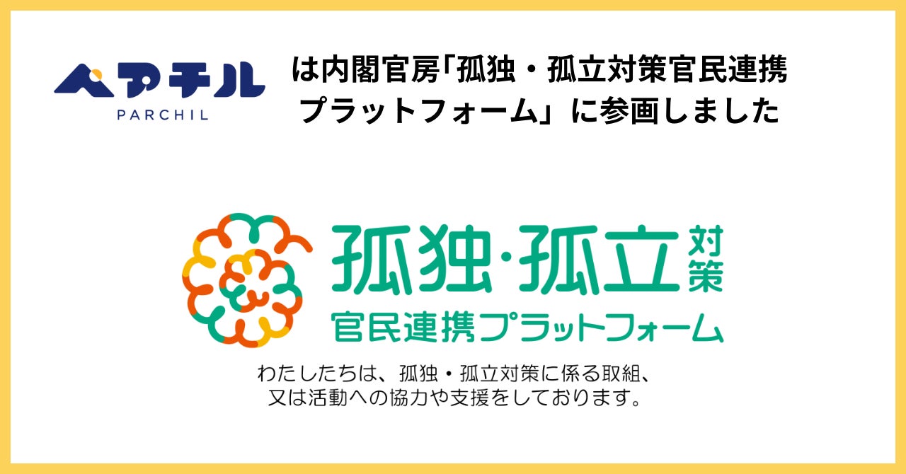 ひとり親限定のトークアプリ「ペアチル」の開発・運営をする⼀般社団法⼈(⾮営利徹底型)ペアチル(本社:東京都港区、代表理事:南翔伍)は、内閣官房「孤独・孤立対策官民連携プラットフォーム」に参画いたしました。