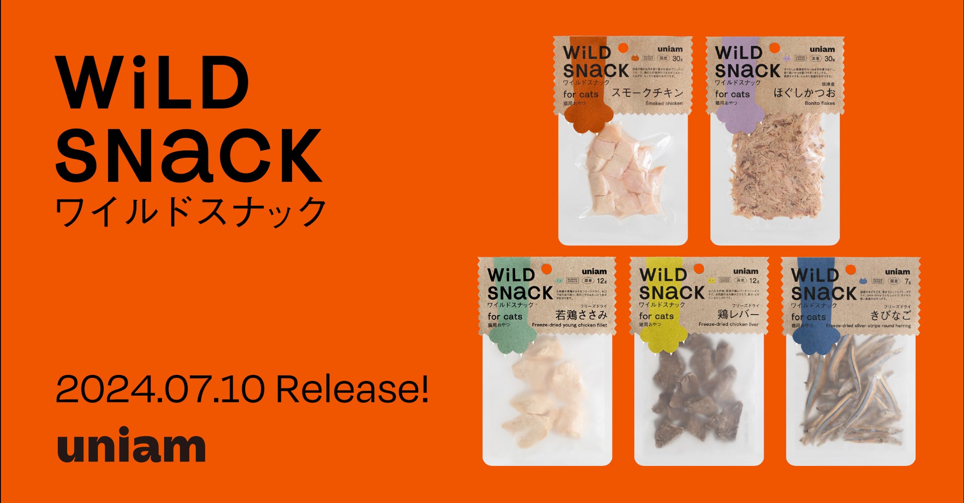 「ねこと生きるを、ユニークに。」をパーパスに掲げ、「ねこ」に特化したフレッシュキャットフードを事業の中心に据える株式会社uniam(所在地:東京都港区、代表取締役CEO:杉本亜衣)は、国産自然食材100%のねこ用おやつ「ワイルドスナックシリーズ」を2024年7月10日(水)より販売いたします。