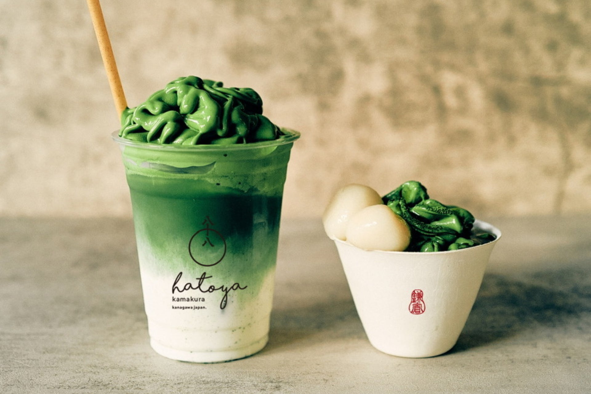(左)抹茶ラテ 鎌倉壱 700円(税込) + 焙煎抹茶ソフトトッピング 600円(税込)