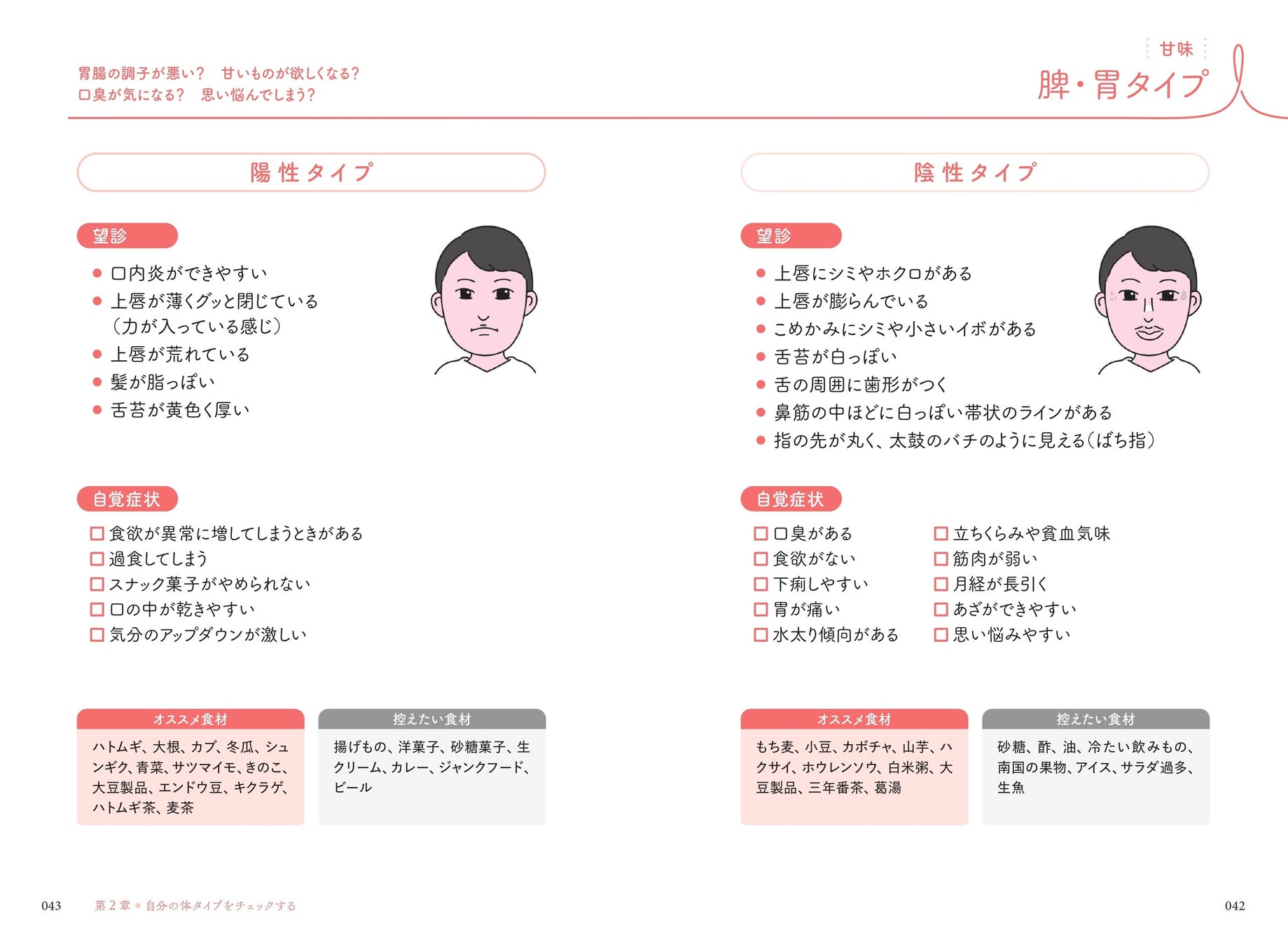 「陰性」「陽性」それぞれ2レシピを見開きで。