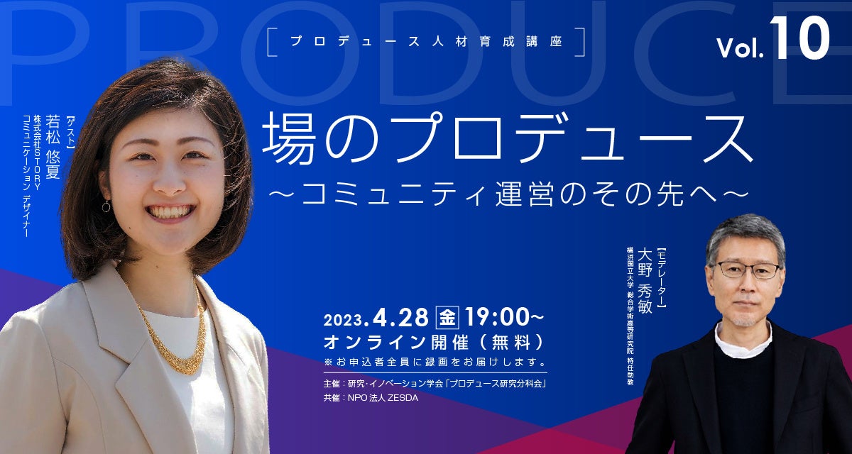 場のプロデュース~コミュニティ運営のその先へ~【プロデュース人材育成講座vol.10】4月28日無料オンライン開催