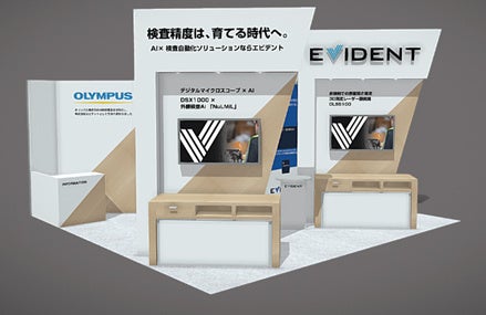 エビデントは、製品やサービスにロボティクスやAI、IoTなどの新しい技術を積極的に取り入れ、お客様の現場の課題解決のサポートおよび作業フロー全体の効率向上に貢献することを目指しています。今回のブースは、「検査精度は、育てる時代へ」をテーマに、不良品画像に色を塗りパターン学習させることでAIによる外観検査を行うAnamorphosis Networks社製「NuLMiL(ヌルミル)」と当社デジタルマイクロスコープ「DSX1000」を組み合わせたシステム展示と実演を実施します。また、近年、製造の現場で品質向上のために求められているISO/IEC 17025認定校正対応製品を製品実機とパネルで紹介するほか、創業から100年の進化を感じていただける特別展示を用意しています。