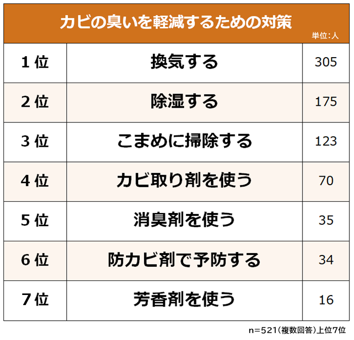 【古い家のカビの臭い対策ランキング】男女521人アンケート調査