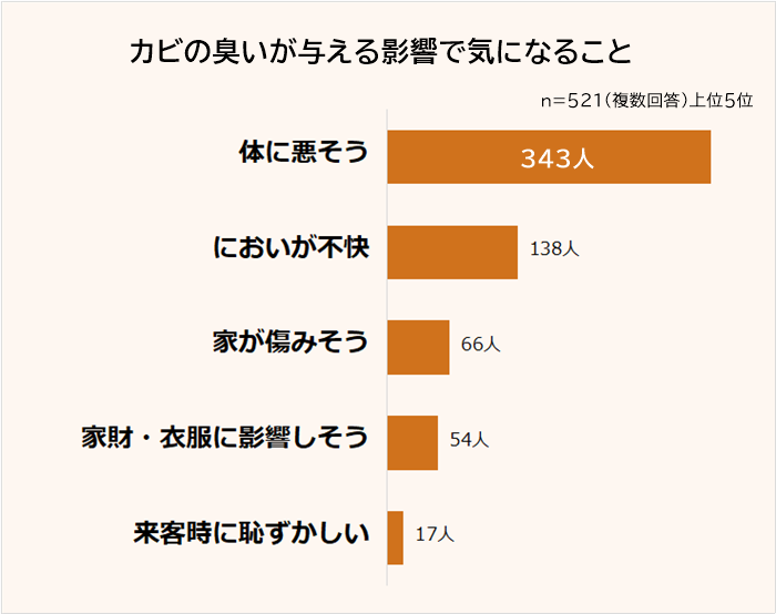 「臭いと一緒にカビそのものを吸い込んでいるのでは」と気になり、健康被害を懸念している人が多くなりました。