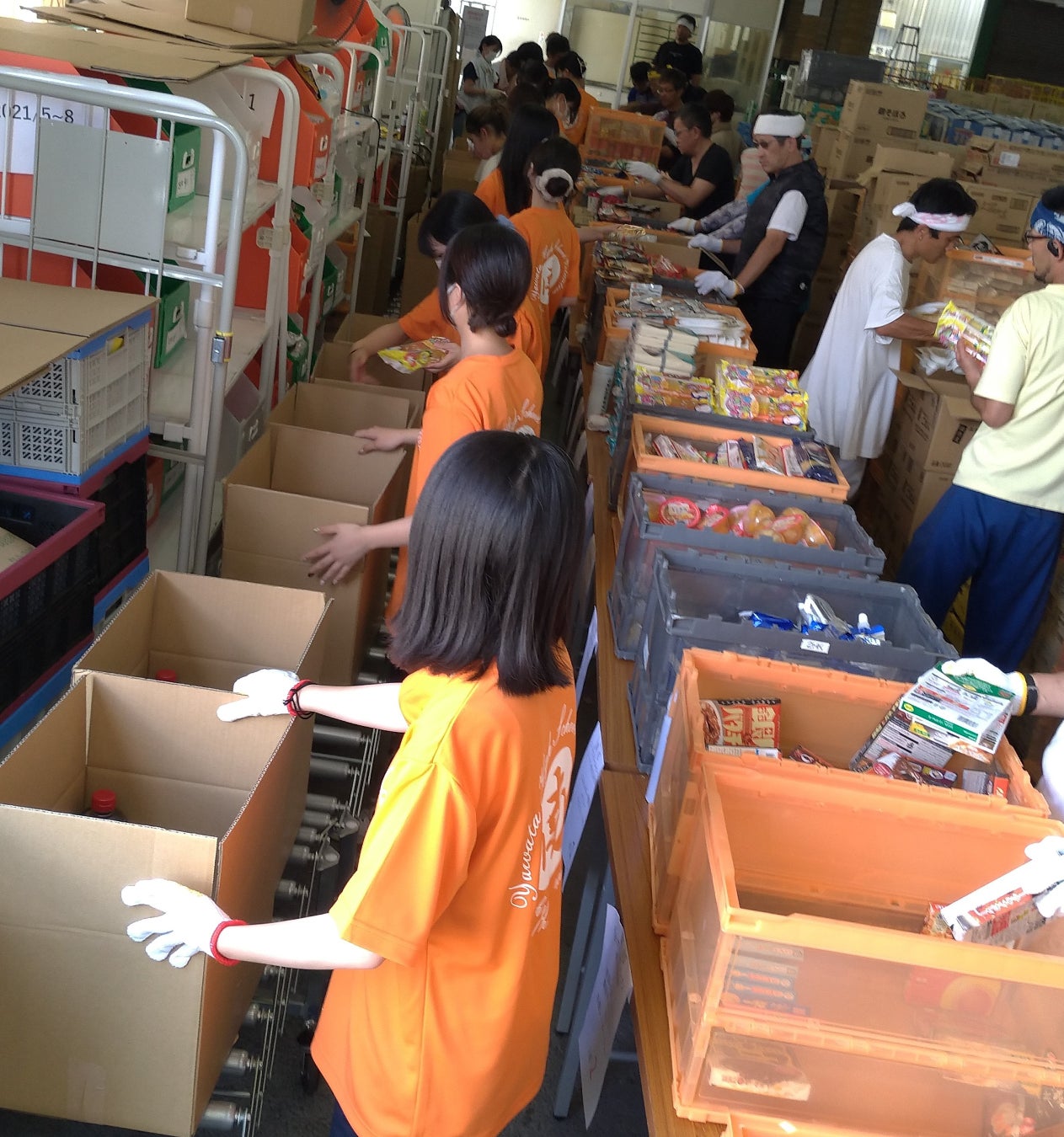 7月20日(土)は、ボランティアスタッフと共に、1世帯につき10kg以上の食品を箱に詰めていきます。