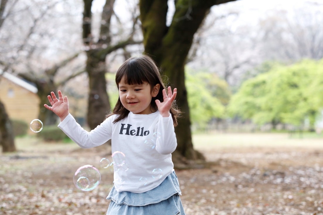 4月は新学期や新しい習い事など、子どもにとって「はじめまして」の場が増える季節。人見知りな子でも、「HELLO」と描かれたこのTシャツをきっかけに自然に会話が始まり、子ども同士のコミュニケーションの橋渡しにも。新しい環境での「はじめまして」を成功体験に変え、着用する楽しさに加え、「人と関わる喜び」を子ども自身に実感してもらえるアイテムです。