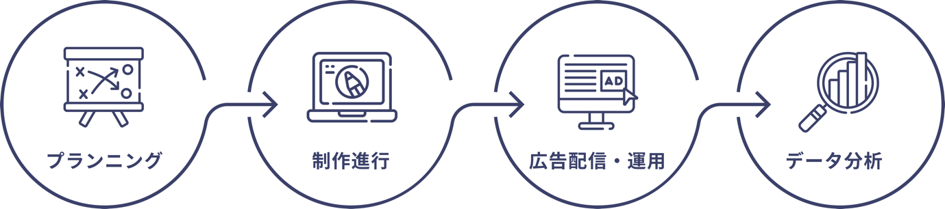 「PrimeAd」を活用することにより、約250の優良コンテンツメディアの中から最適なメディアを選定し、実績豊富な制作チームによるディレクションで効果的なコンテンツをご提案します。プランニングから、データ分析までワンストップでスムーズかつスピーディに進行が可能です。