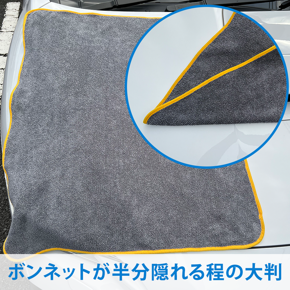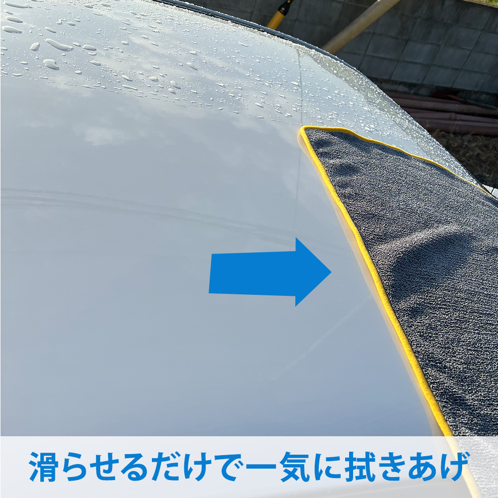 セット販売のマイクロファイバークロスは両面使えて水滴を一回で吸水します。