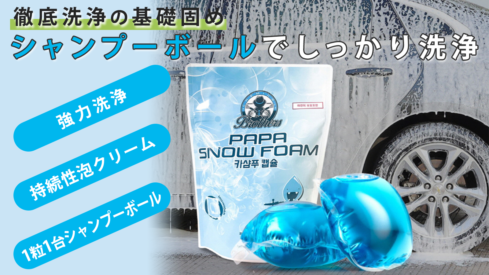 ボディもコーティングも傷めず濃厚泡で汚れを落とす。一粒一台のカーシャンプーボール