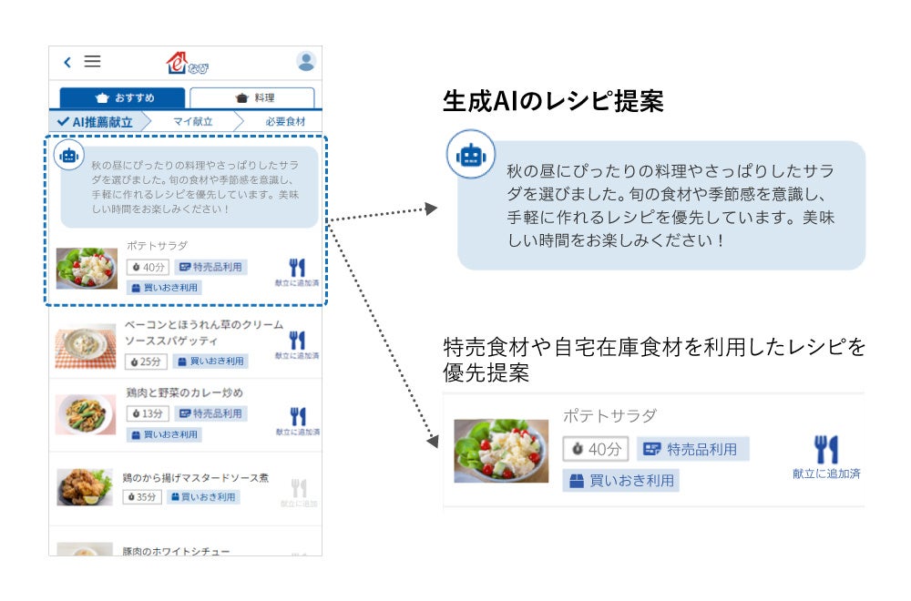 料理レシピサービス「e食住なび/AI献立提案サービス」をリリース!AI活用で週間献立提案サービスを開発、「e食住なび」にアップデートリリース