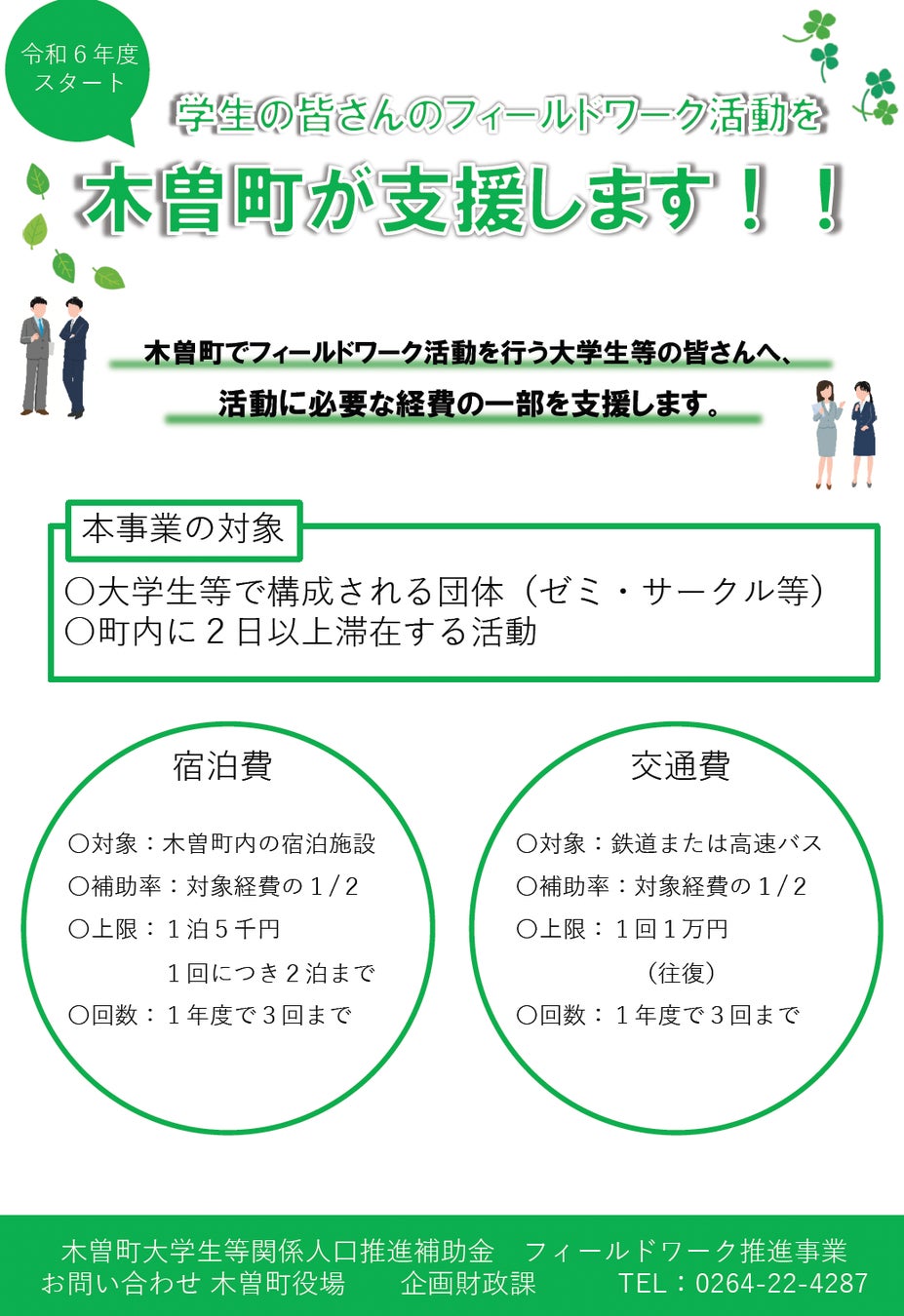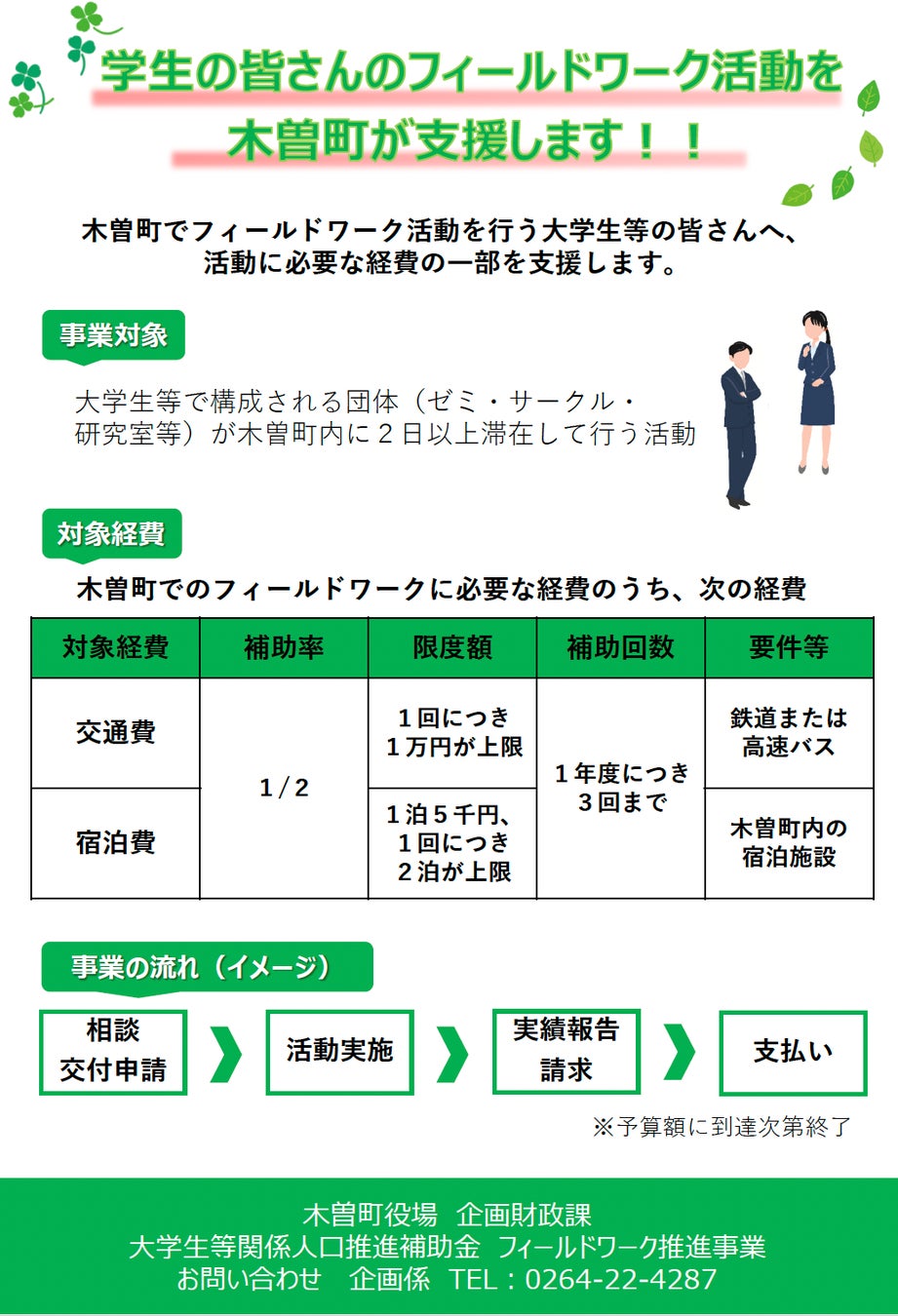 「木曽町大学生等関係人口推進補助金(フィールドワーク推進事業)」