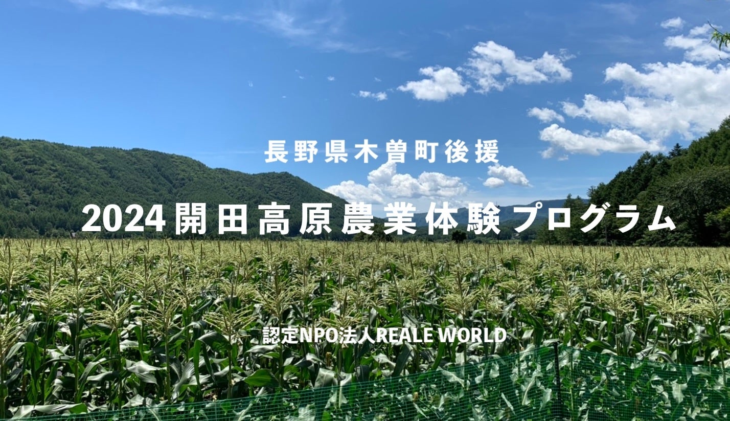 認定NPO法人REALE WORLDが運営する「2024開田高原農業体験プログラム」では、参加者の方々に、未知の大自然の中、今までにない経験を通じて、視野や知見を広げ、 自身の成長及び今後の行動につなげる機会を提供いたします。