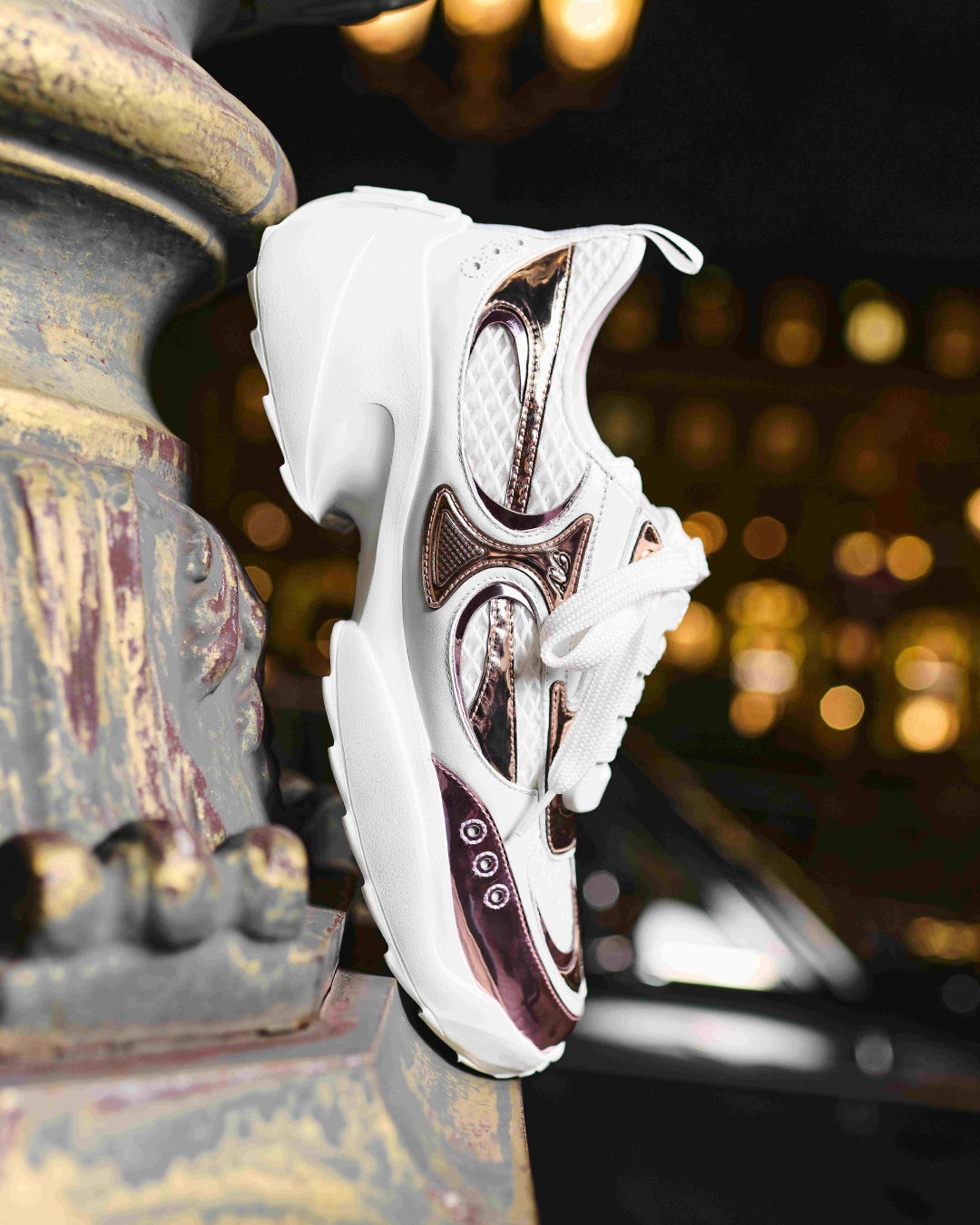 1990年代後半から2000年代初頭にかけてのアイコニックなスニーカーからインスピレーションを得たヴィヴ オン ザ ランは、ヒップホップ・コミュニティのストリートウェアの反骨精神から、ダイアナ妃やジョン・F・ケネディ・Jrのような人物の魅力まで、ファッションを超えた文化的なタッチポイントを表現しています。また、『プリティ・ブライド』のジュリア・ロバーツのようなポップカルチャーの瞬間へのオマージュを込めたデザインで、スニーカーを、抑制されない自由奔放の象徴として紹介しています。