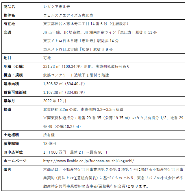 都心の収益不動産を、もっと身近に。東急リバブルの不動産小口投資商品『レガシア恵比寿』募集開始