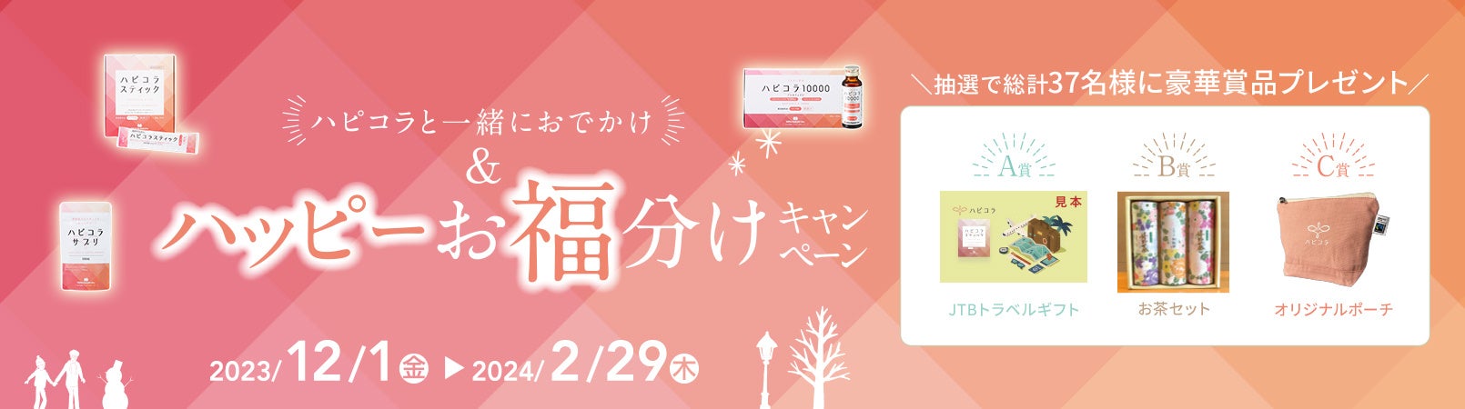 【日頃の感謝を込めて特別なキャンペーン開催】コラーゲンによる美しさをサポートするハピコラシリーズ『ハッピー&お福分けキャンペーン』