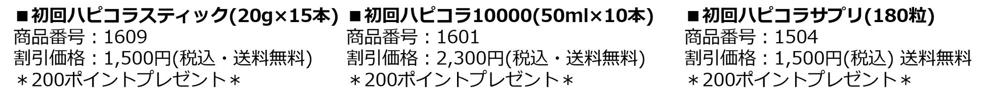 ・ ハピコラシリーズ定期お届けコースの新規申込み、および定期おまとめ割引適用の場合は特別ポイント対象外です。