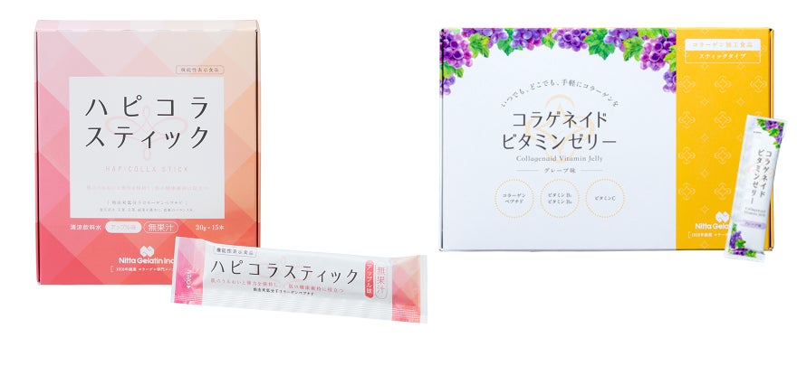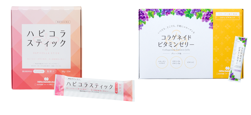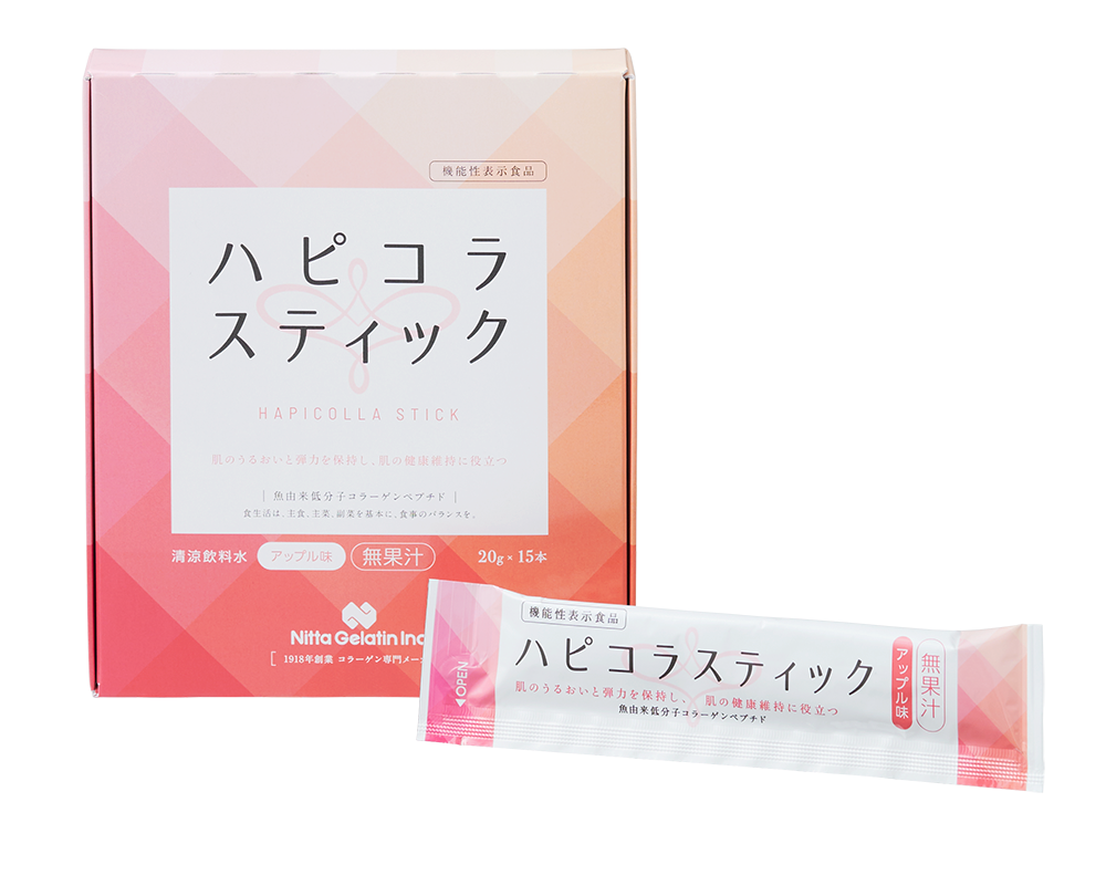 シリーズのメイン商品となる『ハピコラスティック』は、肌のうるおいと弾力を保持し、肌の健康
