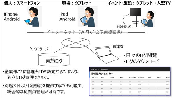 株式会社NeU(本社:東京都千代田区、代表取締役:長谷川清、以下NeU)は、運転を業務とする企業を対象に、運転に重要な認知機能を1分で簡単にチェックできる「運転脳力チェッカー」のサービスを6月より提供開始しましたことをお知らせいたします。「運転脳力チェッカー」は、忙しいドライバーでも短時間で簡単に安全運転能力をチェックできることをコンセプトとして設計しました。