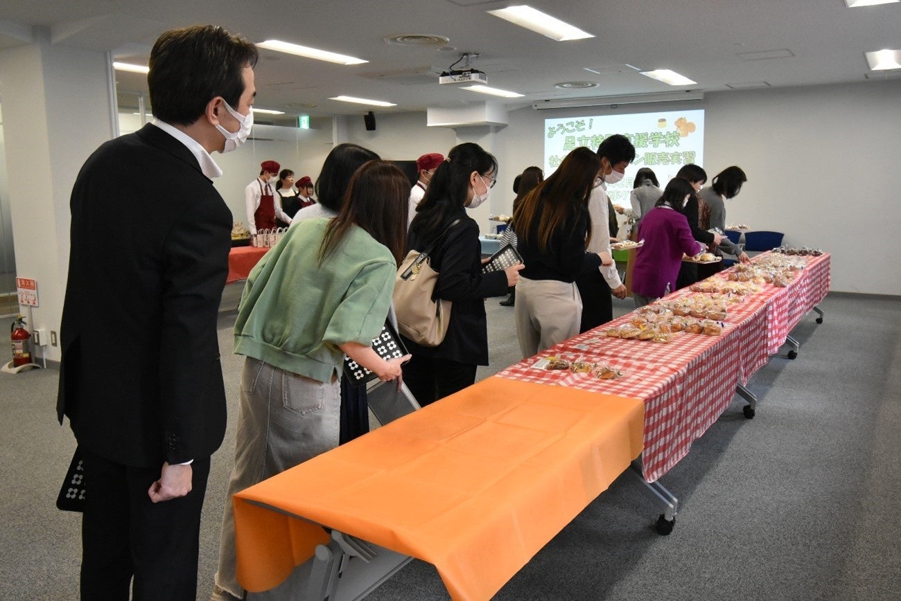 同活動は、JFE商事サービス(株)が同校を訪問した際、地元でパンの実習販売を実施していることを知り、生徒たちの社会科実習の一助として、社内での実習販売を提案したことをきっかけに2021年にスタートしました。現在では、社会貢献活動のひとつとして同活動は定着しており、毎回販売を楽しみにしている社員で行列ができ、開始から30分でほぼ完売となる日もあるほどの大人気のイベントとなっております。