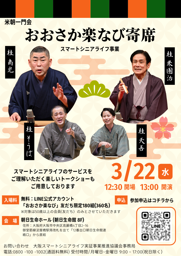 スマートシニアライフ事業LINE公式アカウント「おおさか楽なび」友だち限定イベント「おおさか楽なび寄席」を3月22日に開催します!