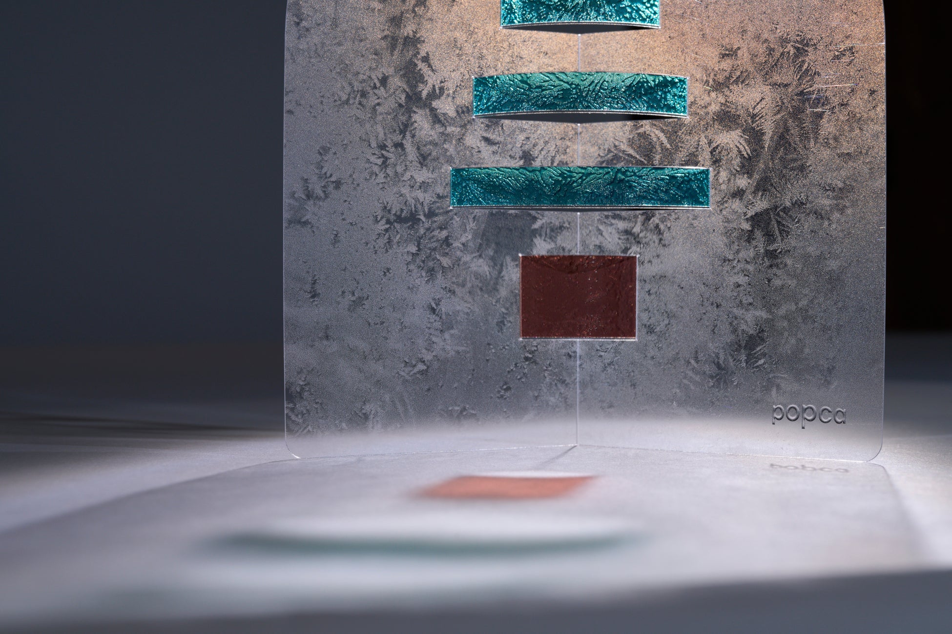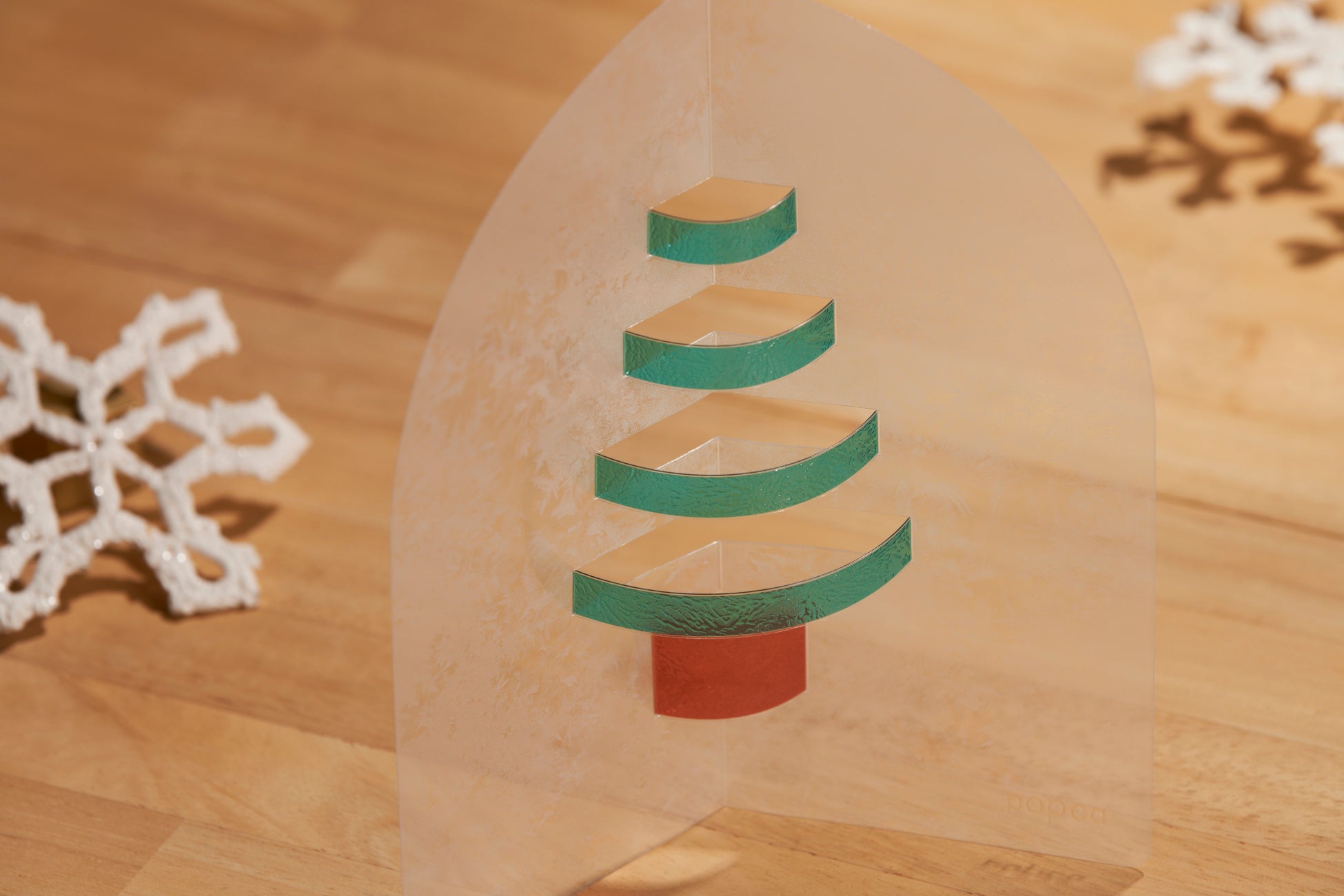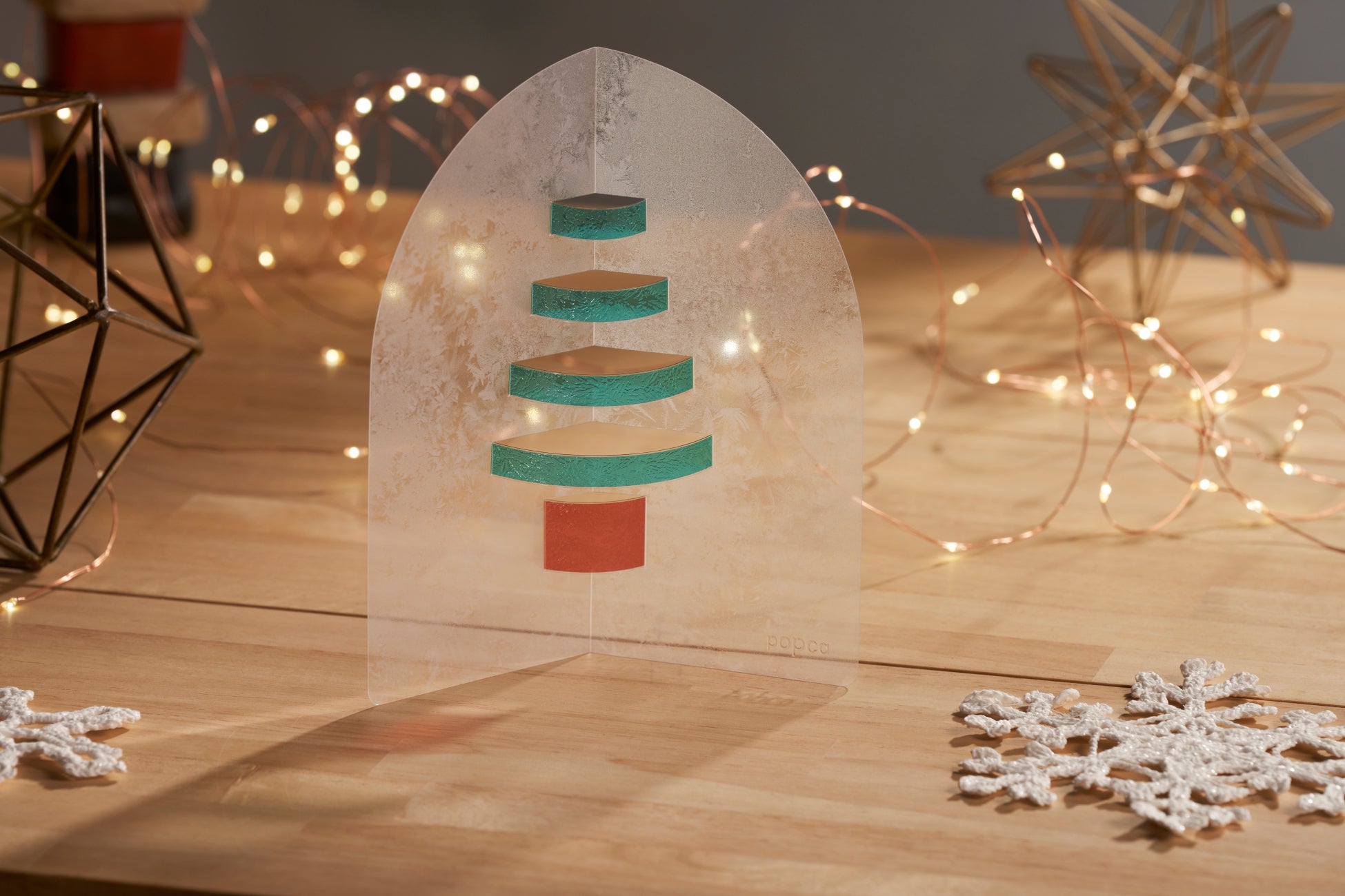薄さ0.3mm重さ12gのクリスマスツリー『popca』が11月1日発売開始。ステンドグラスのようなキラキラ感や微細な霜の模様を特殊印刷で表現