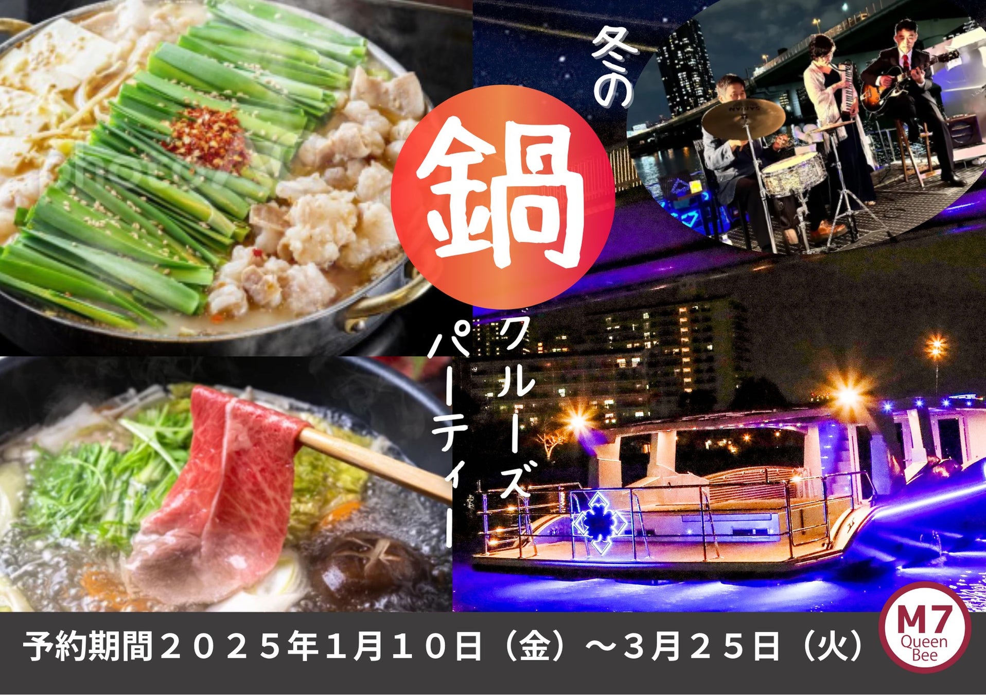 《期間限定!》大阪の川を満喫!最新鋭の次世代EV(電気)船「Queen Bee M7」で温かい鍋を楽しめる貸切クルージングプラン「冬の鍋クルーズパーティー」を期間限定で予約受付開始!!