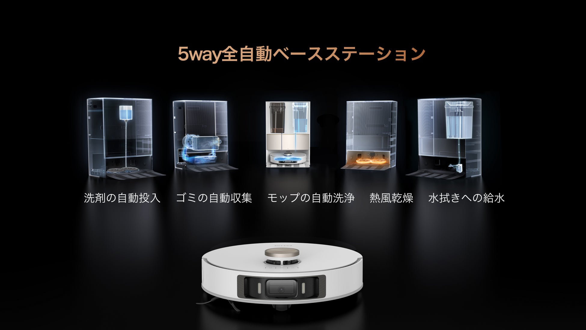 【信頼できる全自動】 床掃除のすべてを任せられる:5way全自動ベースステーションによる究極の清掃体験