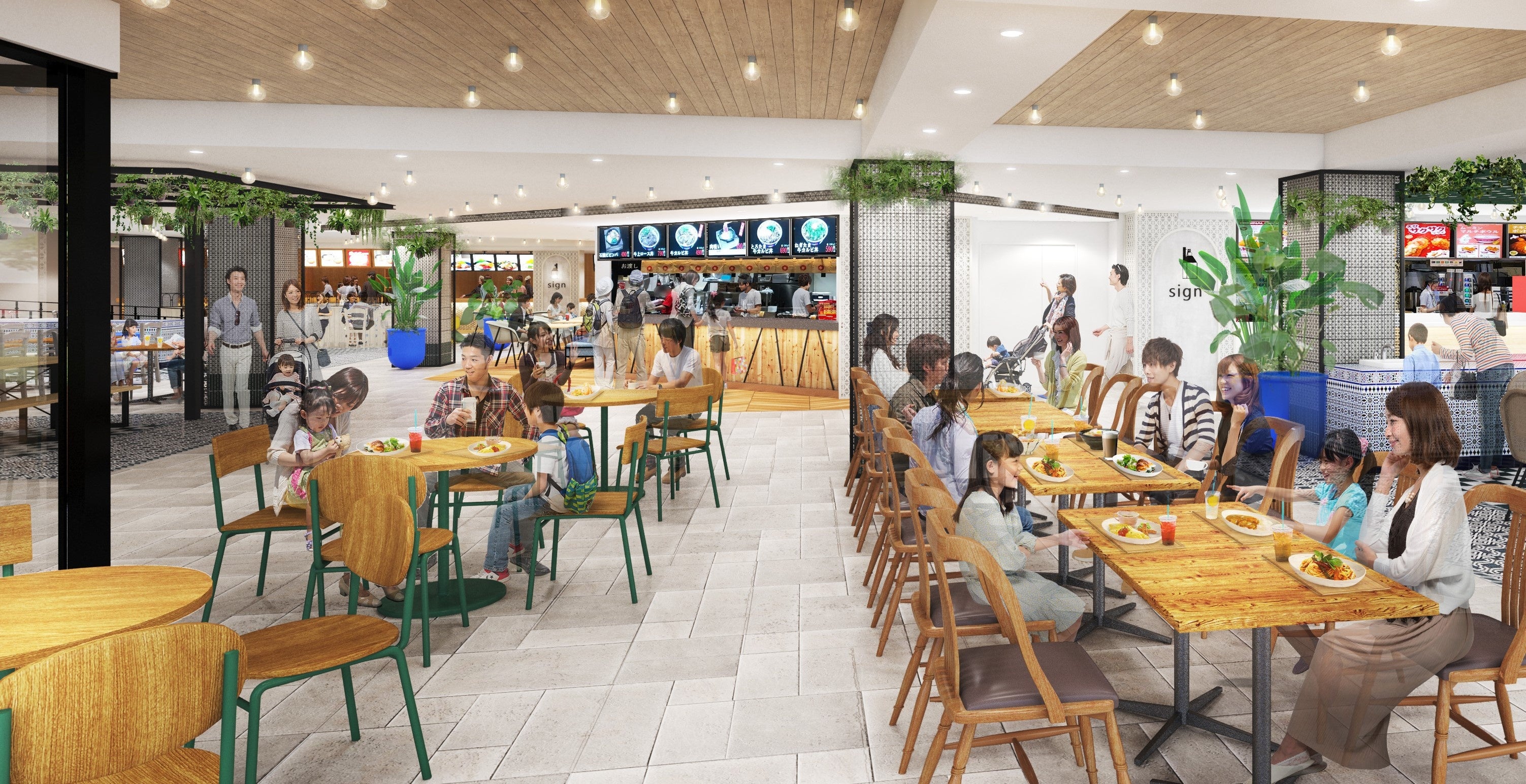 3番館1階には、待望のフードコートを新設します。ファミリー、お友達、おひとりさまなど幅広いお客様にお食事を楽しんでいただける店舗ラインナップや、過ごしやすい座席配置をおこないます。買物広場側に設置するテラス席では、開放的な雰囲気の中、ピクニック気分でお食事をお楽しみいただけます。