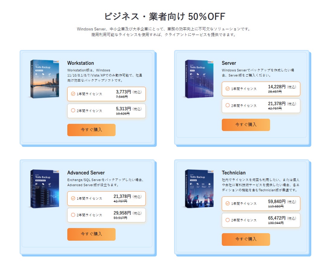 ビジネス・業者向けのバックアップソフト - 50%OFF