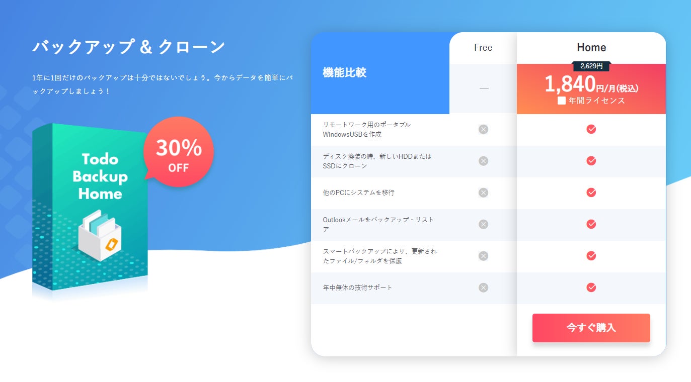個人用のデータバックアップソフトウェア - EaseUS Todo Backup Homeの1ヶ月間ライセンスと1年間ライセンスは30%OFFとなります。