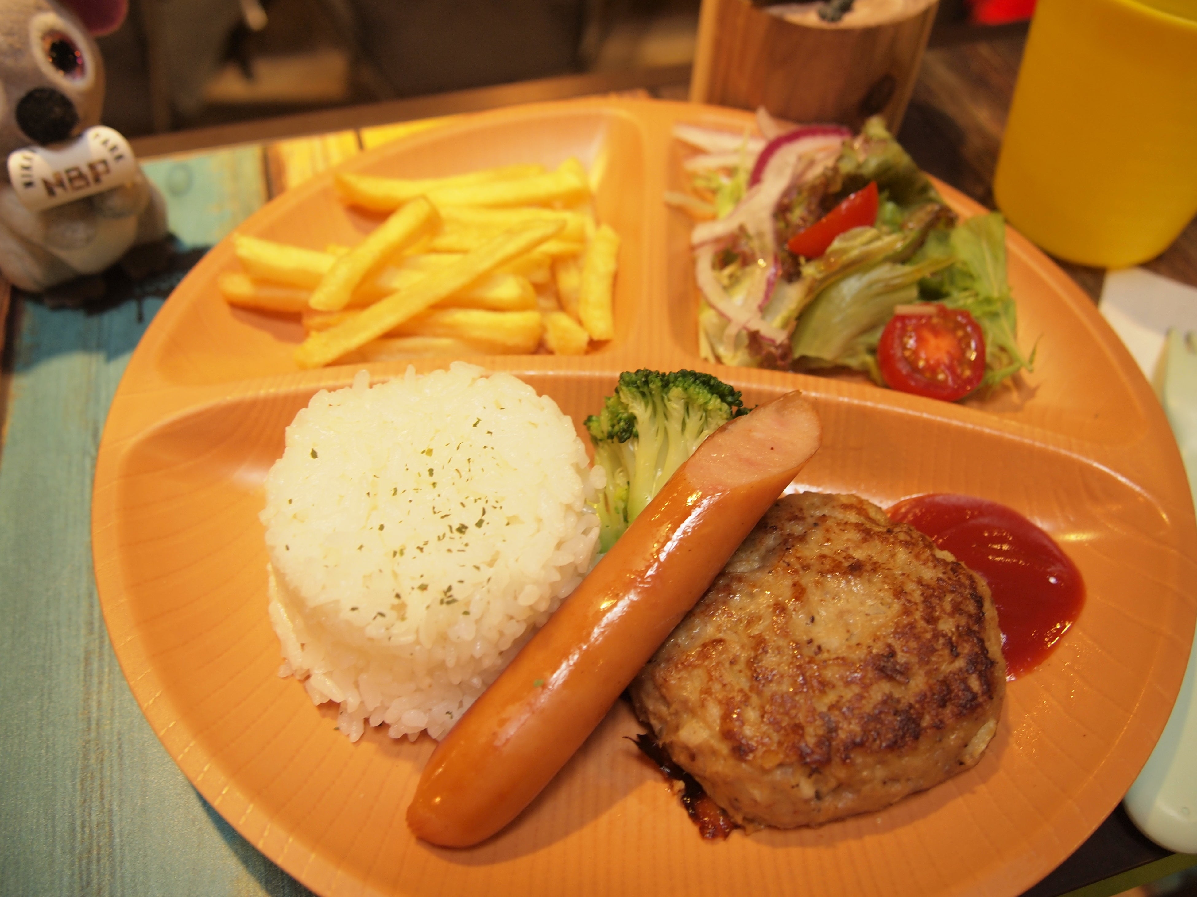 自家製手ごねハンバーグと特製ソーセージでお子様も大満足のプレート