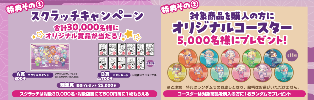 期間中、対象店舗にてお買い上げ500円(税込)ごとにスクラッチカードを1枚プレゼント!