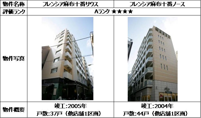 今回評価認証を取得した物件は「フレンシア麻布十番サウス」「フレンシア麻布十番ノース」で、評価ランクは2物件ともに「Aランク」です。
