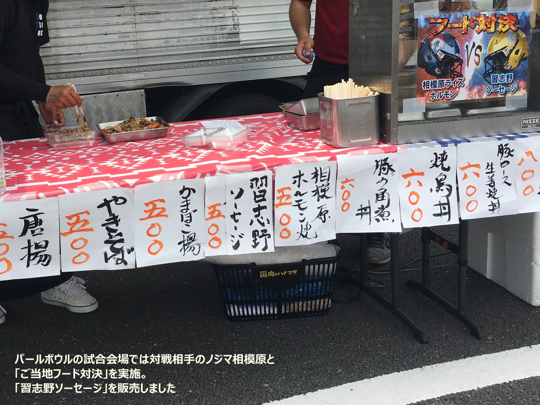 これまで、ホームゲームやチーム主催イベントで習志野ソーセージを販売していただいていましたが、先日のパールボウル決勝で初めて市外の試合会場(富士通スタジアム川崎)で販売し、予定していた60本が完売しました。今後は、このように市外の試合会場での販売や、ホームゲームでの「習志野ソーセージデー」などを計画し、たくさんの方に、習志野ソーセージを食べながらオービックシーガルズを応援する観戦体験をしていただきたいと考えています。