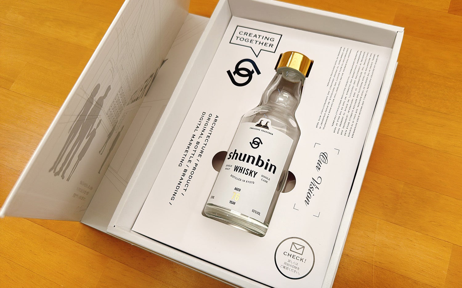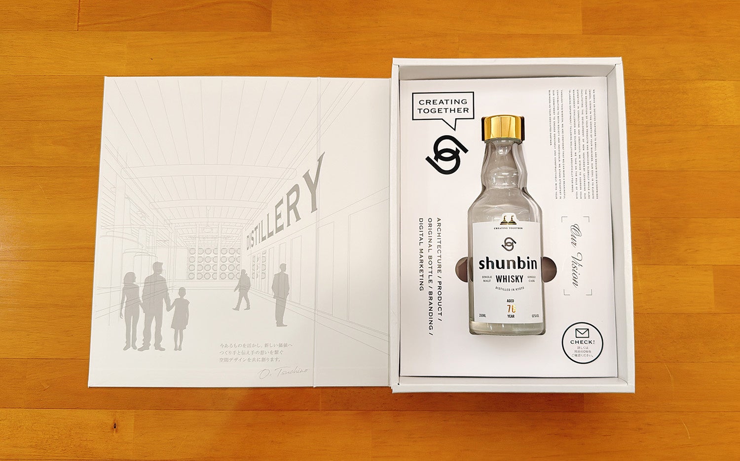 このDMは、蒸溜所へ向け、建築デザインやパッケージデザイン案と共に200mlのサンプル瓶を同梱して送付。空間建築デザインはコスト面でハードルが高く、集客に課題を抱えていたため、当社の強みである「個性を生かしたブランディングサービス」と「空間建築デザイン」を融合させたトータルソリューションを提案し、消費者に深い感動をお届けすることを目指しました。さらに、必ず開封したくなるようなデザインに仕上げ、ブランド体験を強く訴求しました。