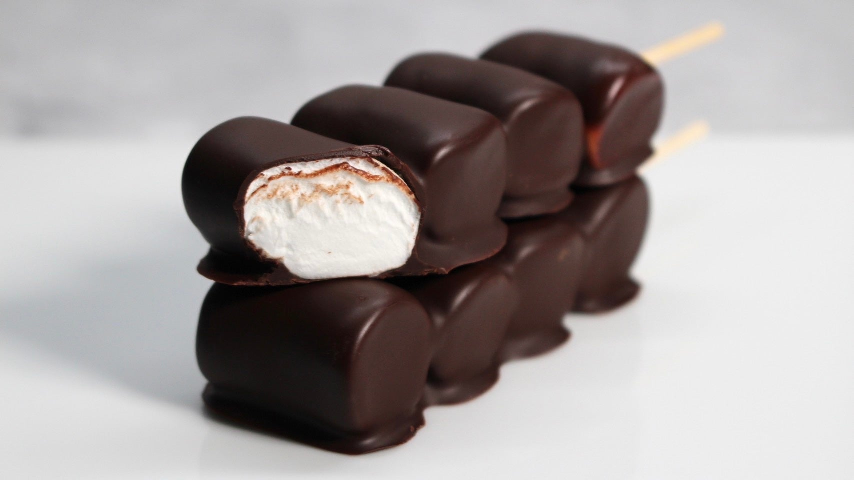 もっちりとしたマシュマロを、柔らかいチョコレートでコーティングした新食感の商品。こちらも人気上昇中。