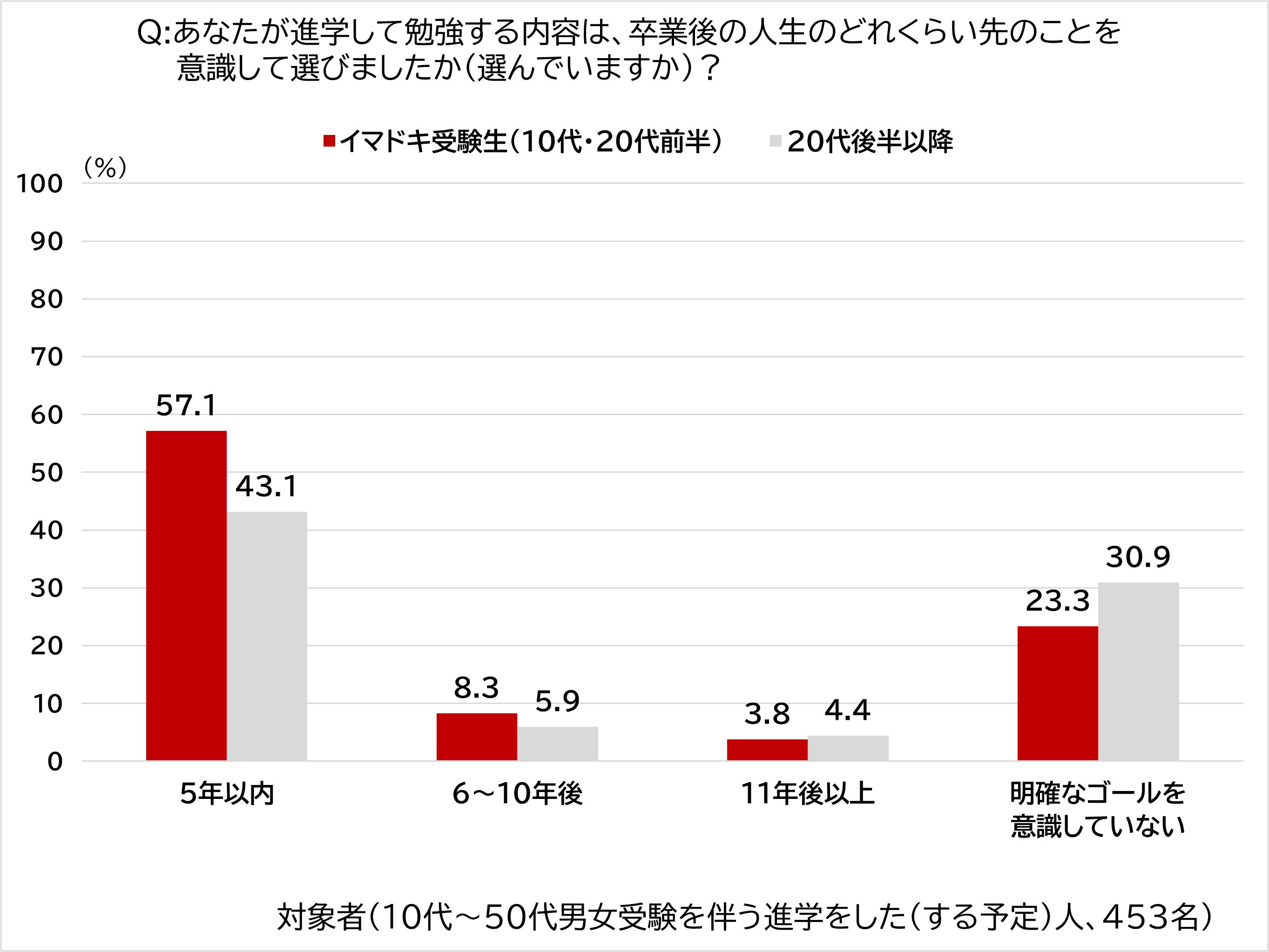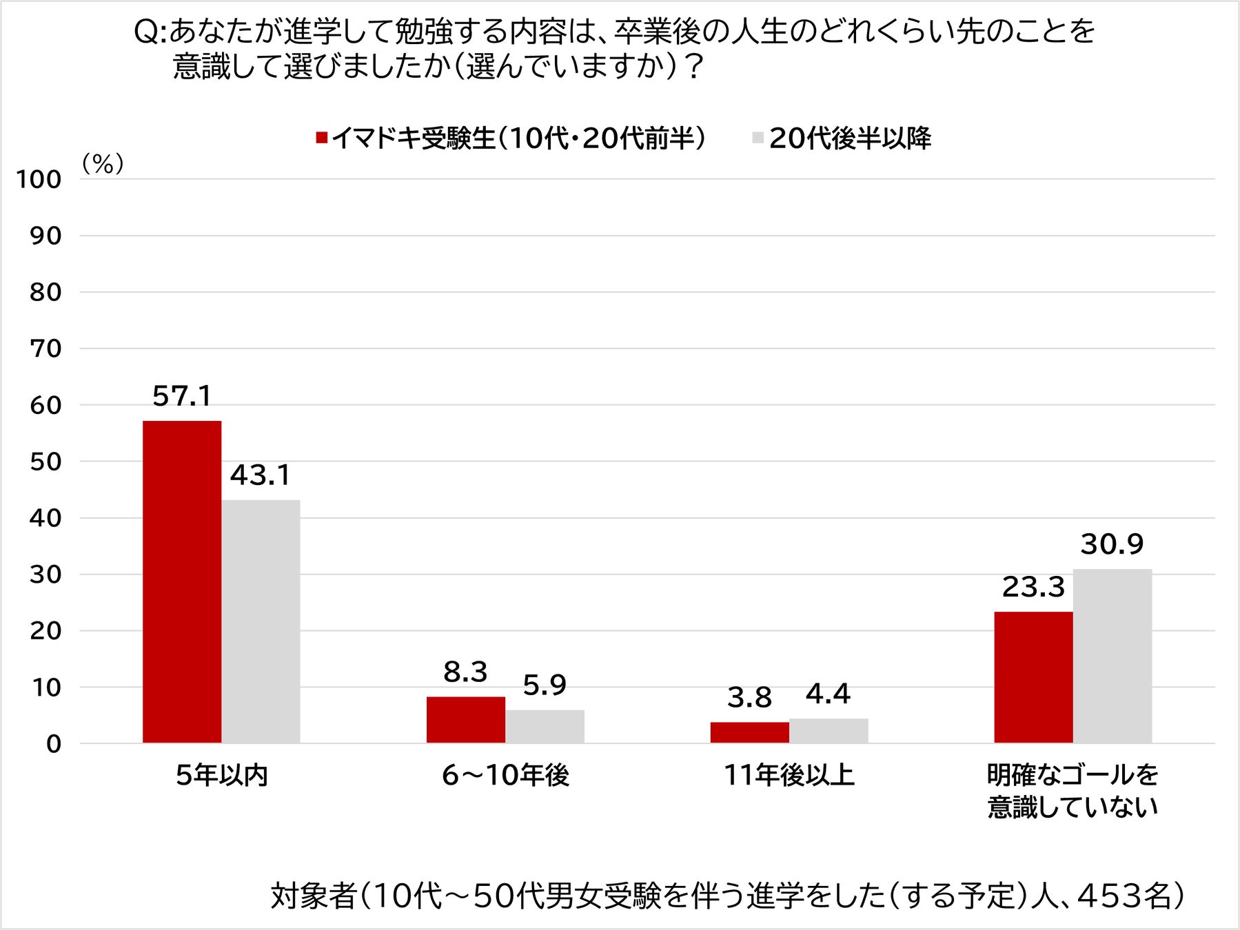2. イマドキ受験生は進学先で勉強する内容を、「卒業後5年以内」に活用することを意識しており、短期的なゴールを設定していた
