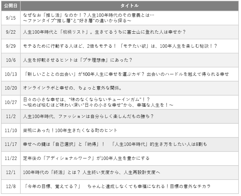 また、100年生活者研究所では毎週、「人生100年時代」をテーマとしたニュースを配信しています。記事の詳細は下記URLにてご確認ください。