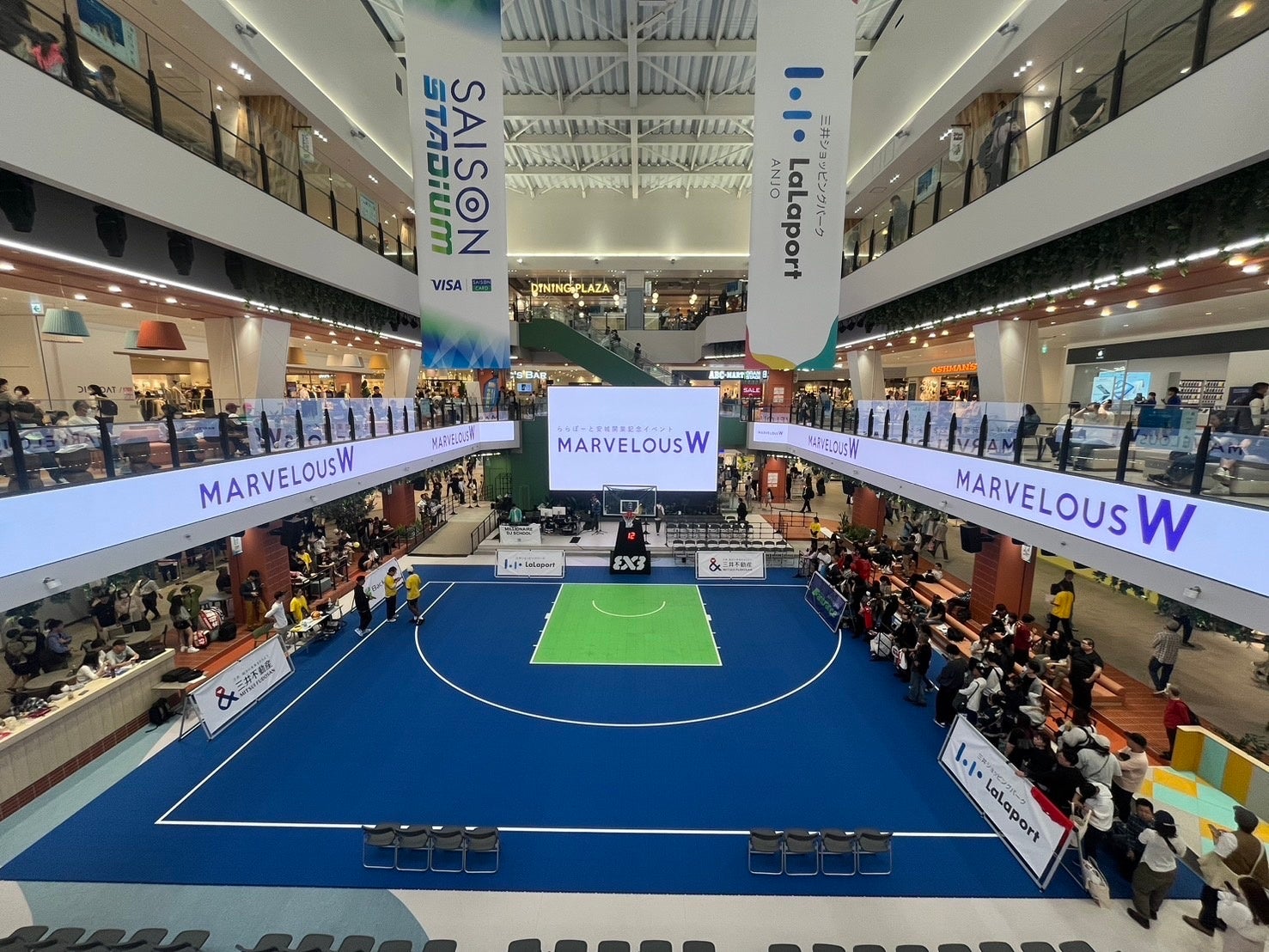 Back Dooor株式会社(所在地:愛知県名古屋市昭和区、代表取締役:馬瓜エブリン)は、2025年4月19日(土)・20日(日)に開業まもない「三井ショッピングパーク ららぽーと安城」にて、女子バスケットボールWリーグの強豪3クラブが激突する3x3イベント 「Marvelous W」 (マーベラス ダブリュ)を開催しました。3x3では1,600名のお客様が観戦し、ショッピングモールならではの回遊性とスポーツ観戦の熱狂が交差した2日間となりました。
