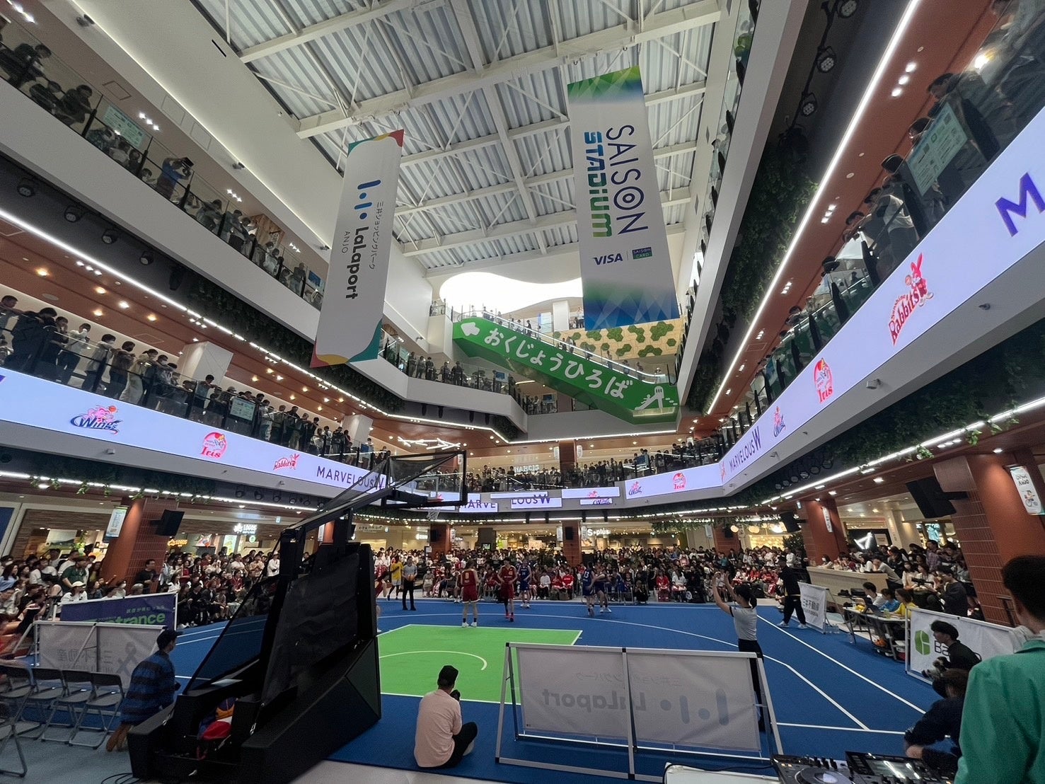 通常は5人制バスケットの選手としてトップレベルを競う選手達ではあるが、その醍醐味を高いバスケットIQとテクニックでららぽーとに来場した人々を魅了しました。