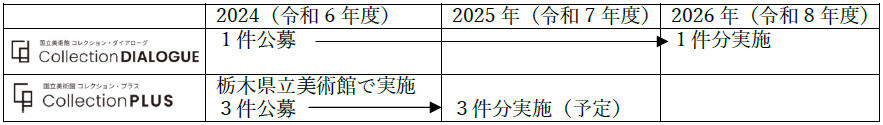 この事業では、「コレクション・ダイアローグ」「コレクション・プラス」による展示に関する輸送費等の経費の一部をNCARが負担します。さらに今回の募集では、2025(令和7)年度開催の「コレクション・プラス」の採択件数を1件から3件に増やし、機会の拡充を狙います。