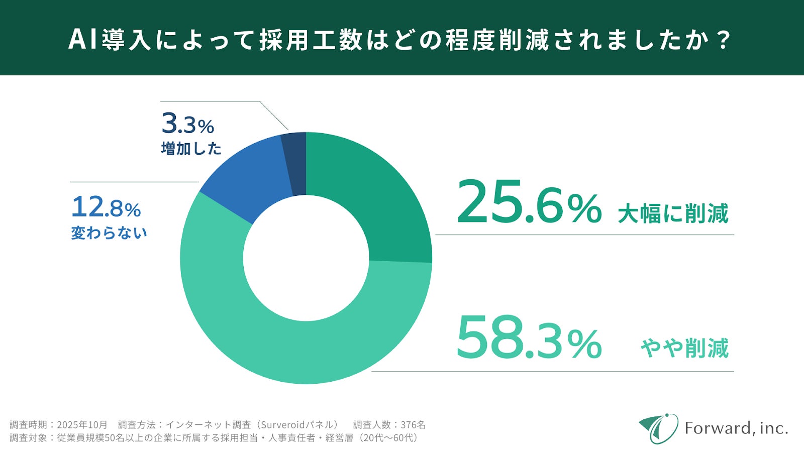 AI導入で効率化は進む。導入企業の7割が「採用工数削減」を実感