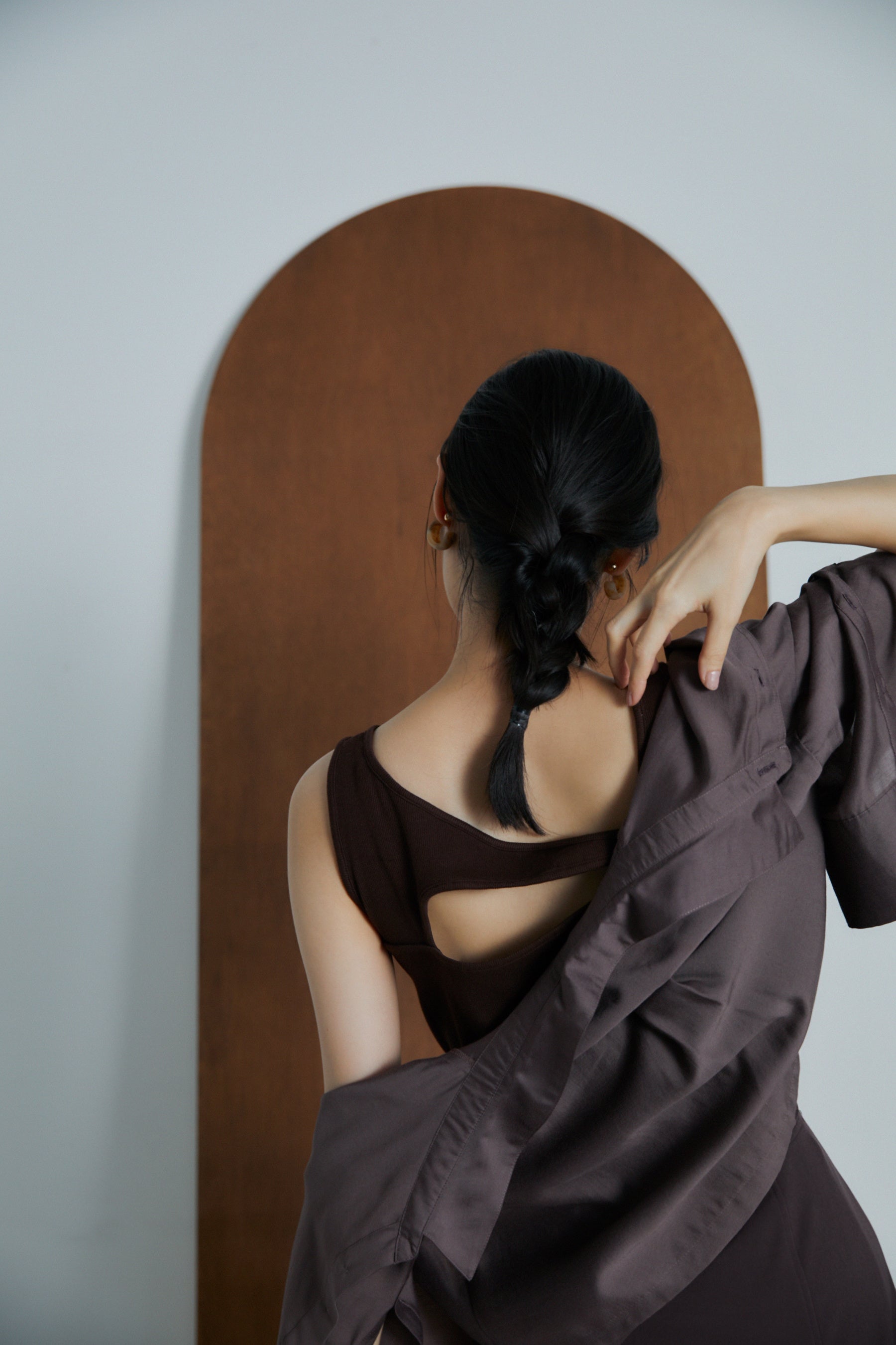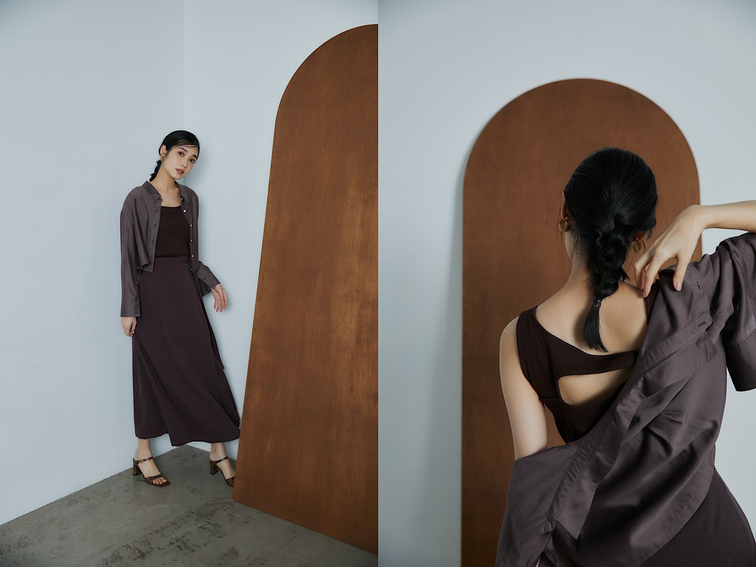 袖スリットのクロップドシャツは羽織るだけでこなれた印象を与えます。