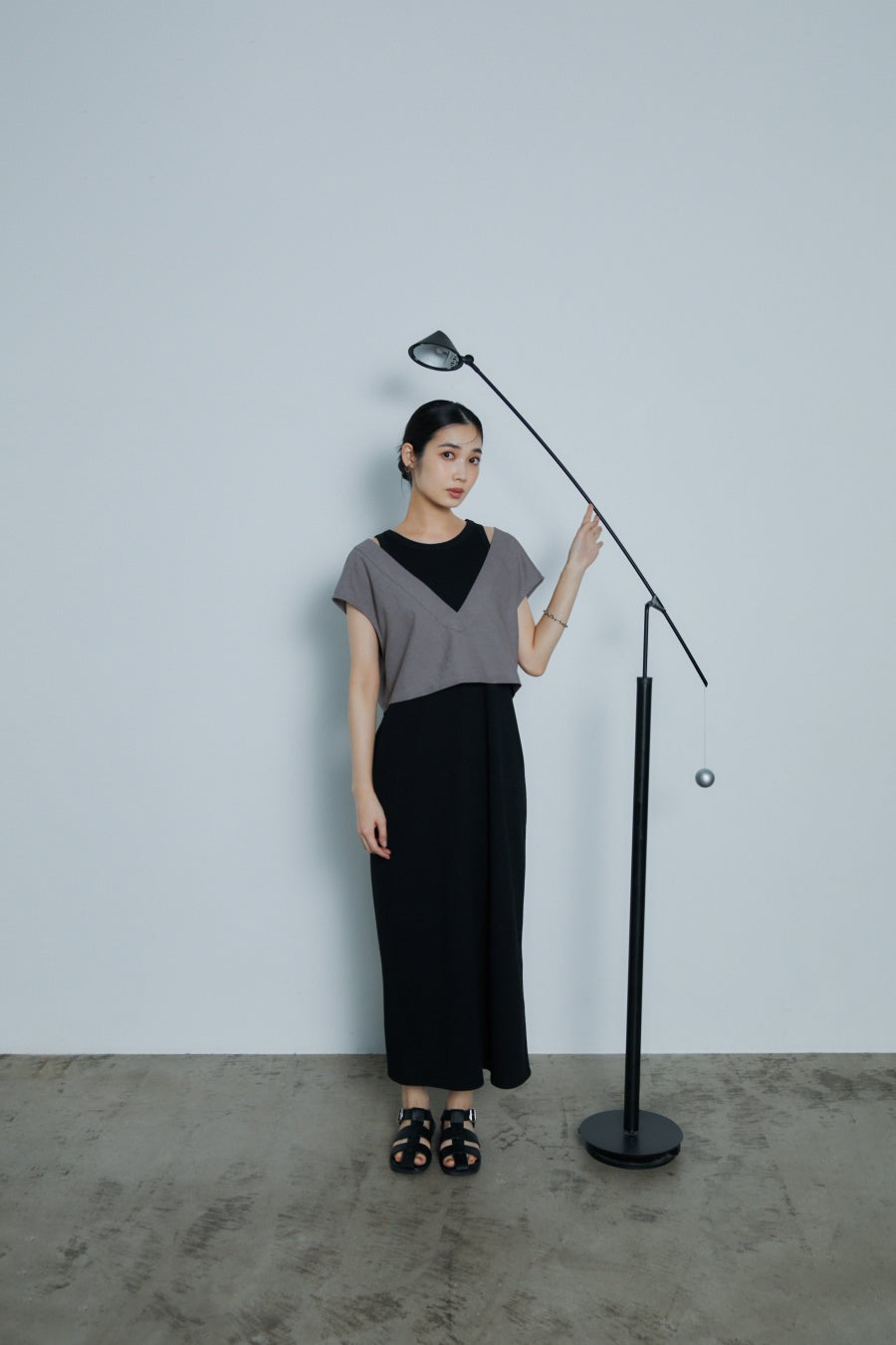Vネックとアメリカンスリーブから覗く肩がヘルシーで夏らしい。