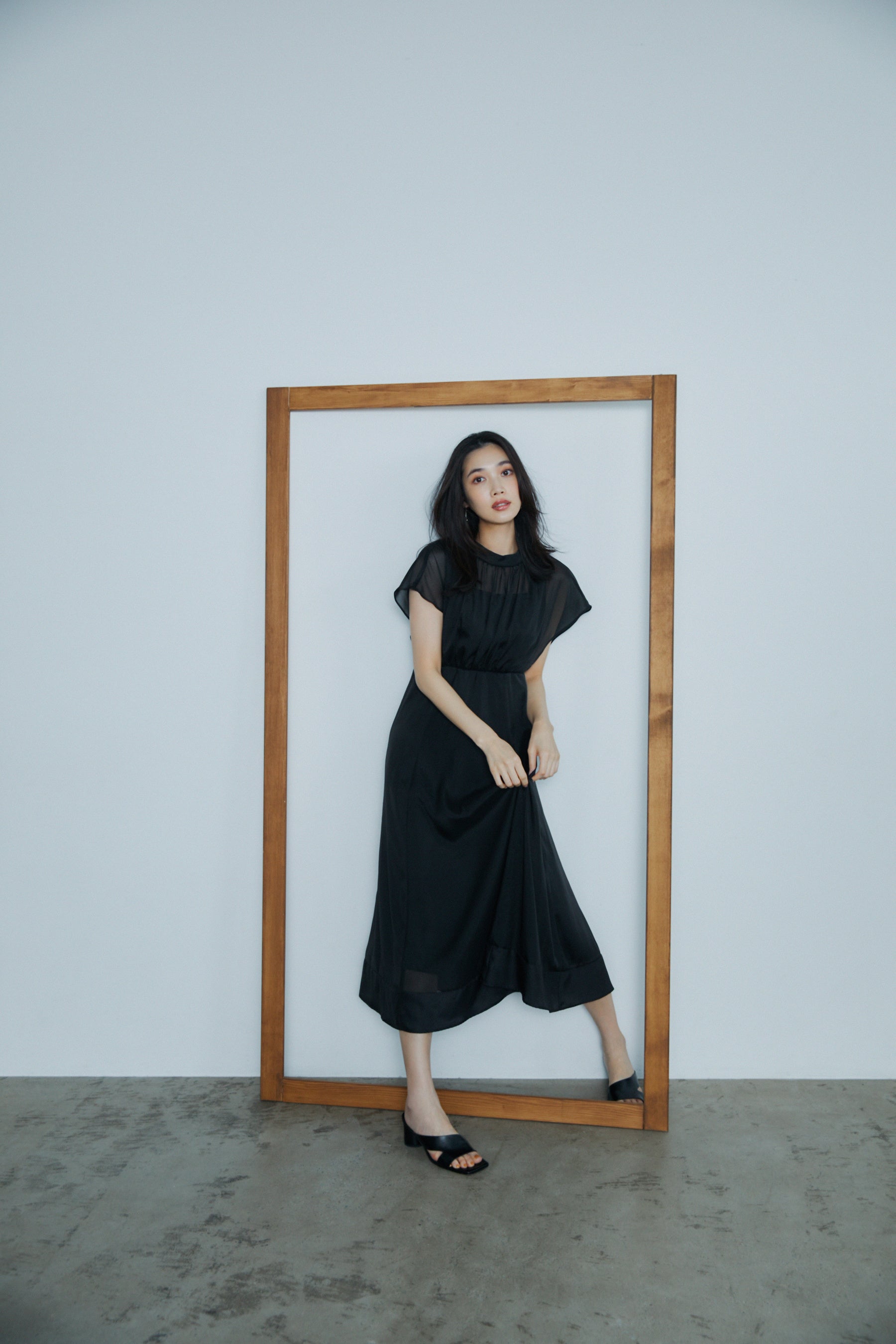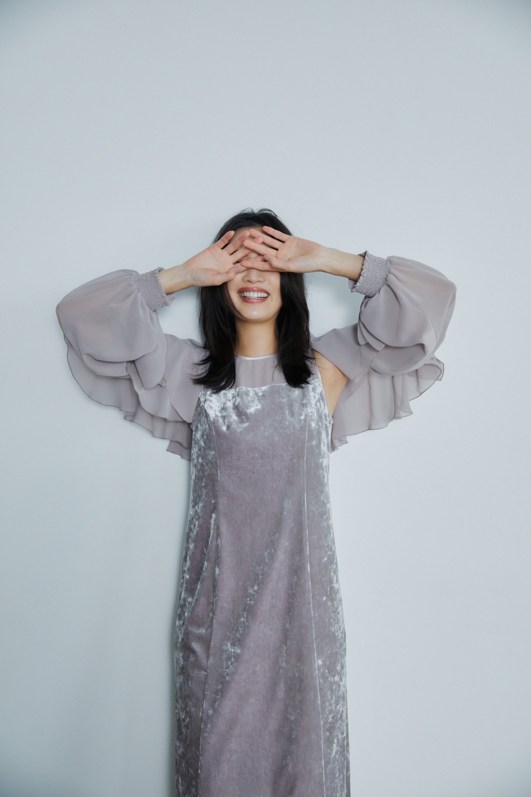 クラシカルな首元やバルーンスリーブもアクセントに。