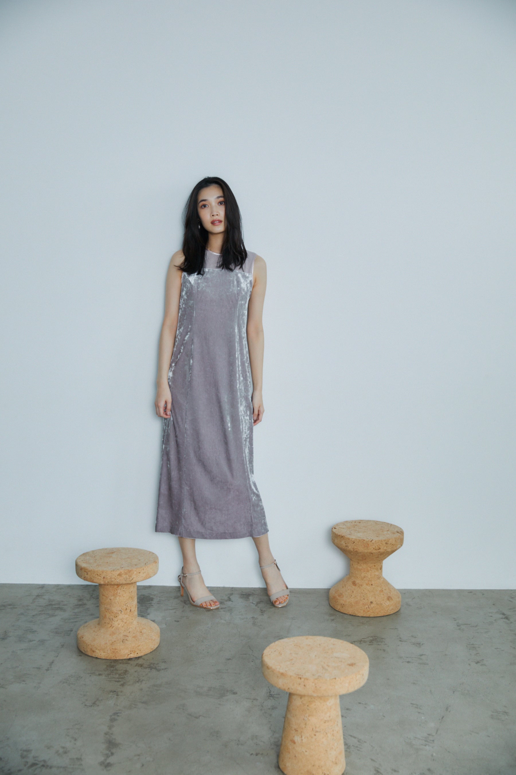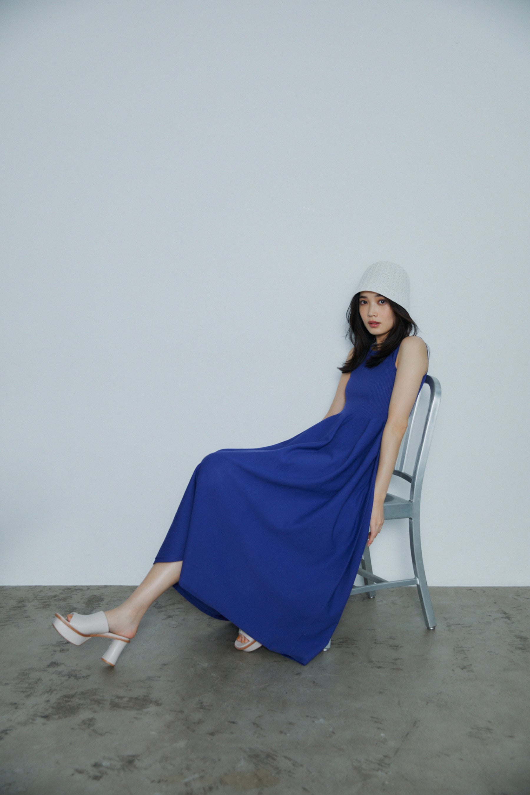 構築的なベルシルエットがドラマティックなニットワンピース。