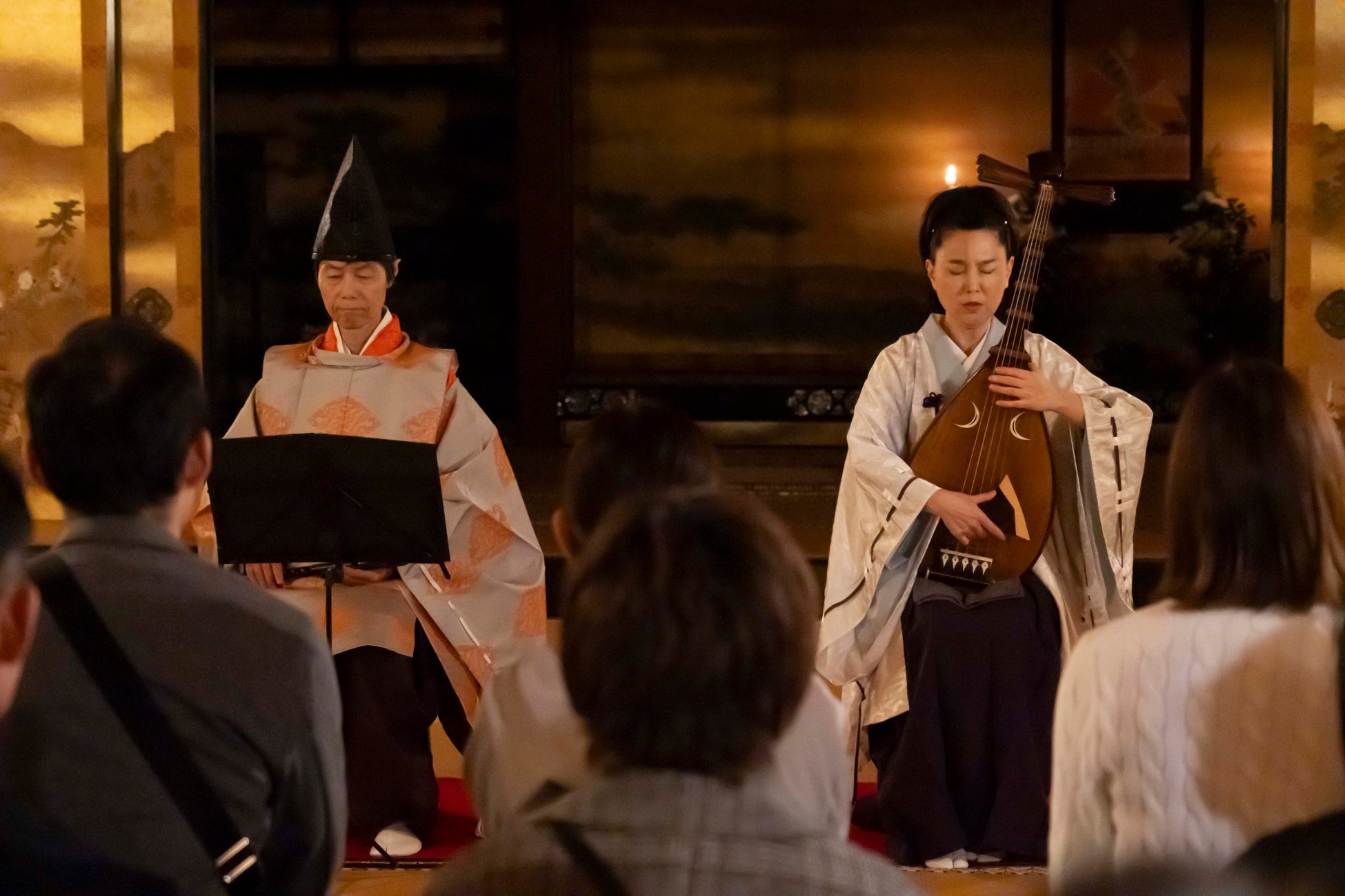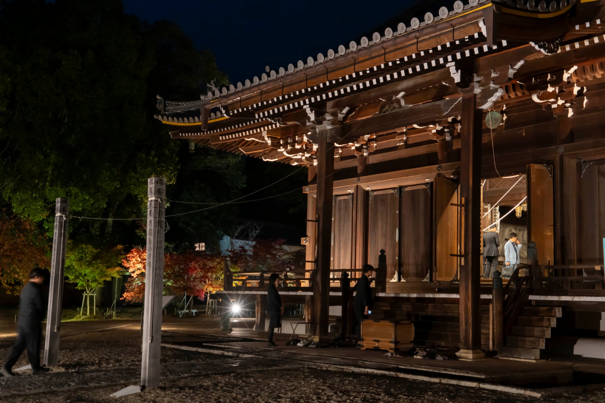伝統と革新を体現するディナーイベントシリーズ「ARTISTIC JAPAN by MASTER’S DREAM」第三段の舞台は、888年に建立され世界文化遺産にも登録された京都の仁和寺。静寂の中に灯るご本尊(阿弥陀如来坐像)の特別独占拝観や、宸殿(しんでん)での雅楽の鑑賞も行われました。