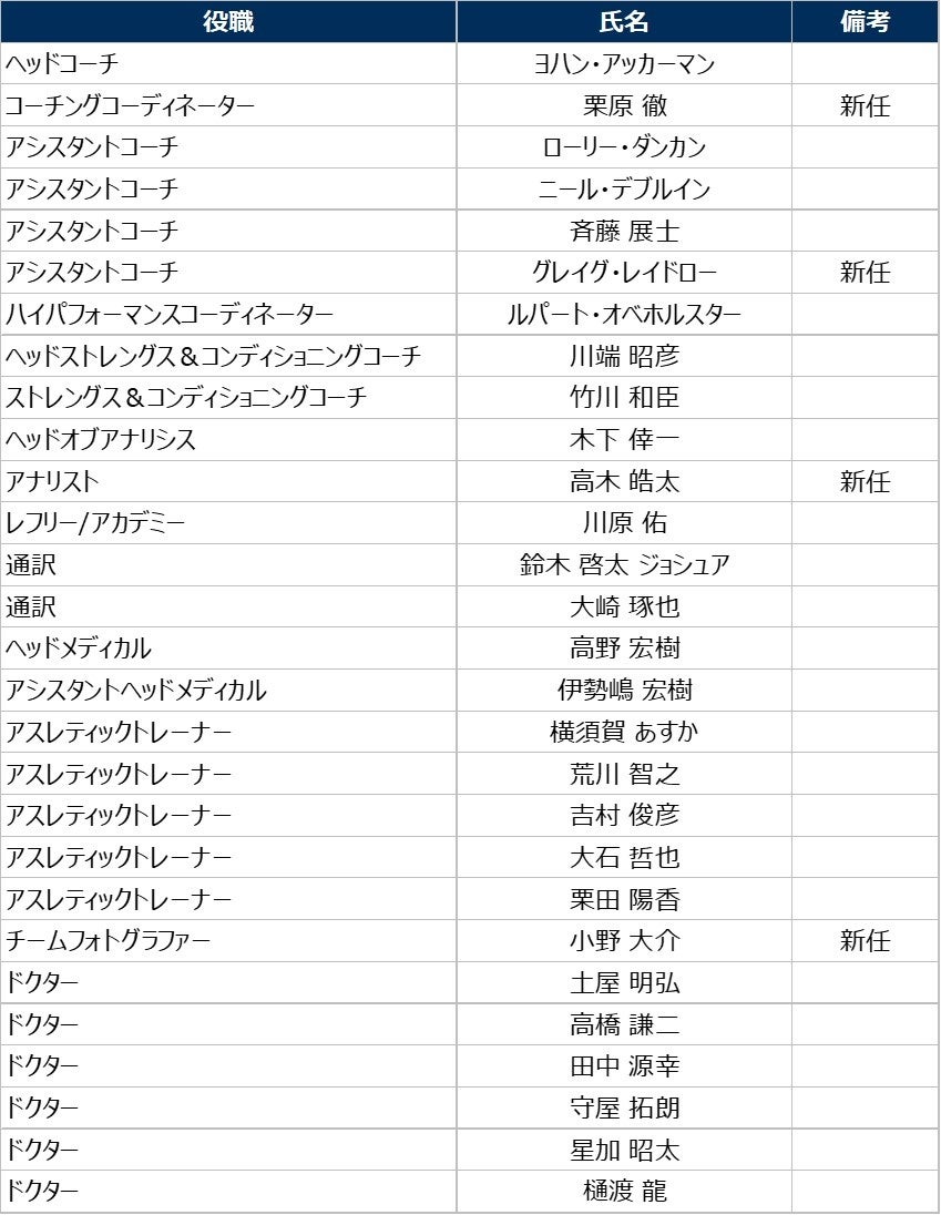 ※なお、昨シーズンで引退したトンプソン・ルーク氏とロブ・ペニー氏との今後のチームとの関わり方について、現在双方で協議中となります。協議終了次第、改めてご案内いたします。